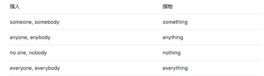 复合不定代词由 some-, any-, no-, every- 加上 -one, -body, -thing 构成。