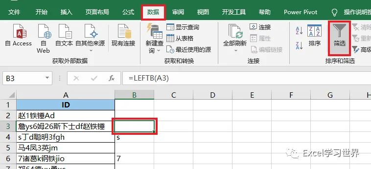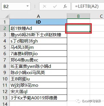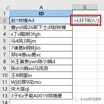 语法为 LEFTB(需要提取字符串的文本, [需要提取的字节数]);