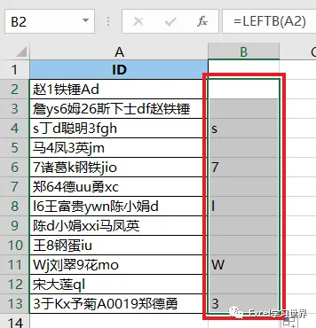 LEFTB 函数与 LEFT 的区别是多了一个 B,表示 byte,所以它的作用是基于所指定的字节数返回文本字符串中的第一个或前几个字符;