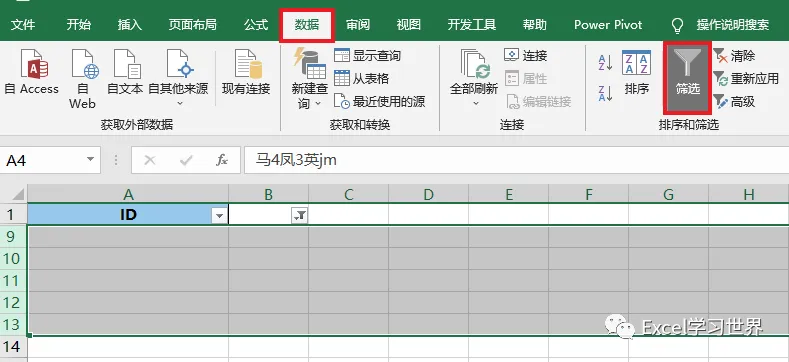 5. 再次选择菜单栏的“数据”–>“筛选”