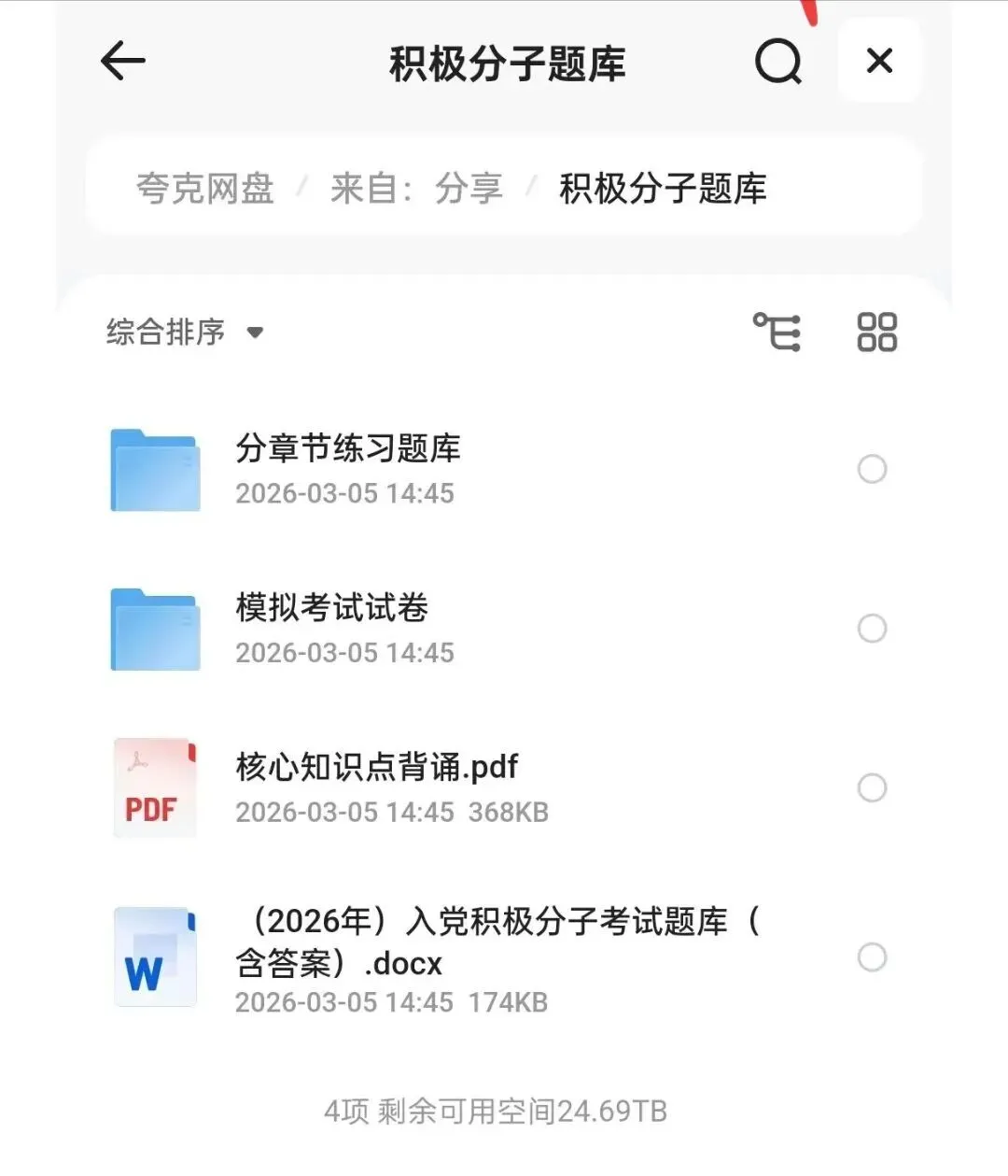 我用夸克网盘给你分享了「积极分子题库」,点击链接或复制整段内容,打开「夸克APP」即可获取。