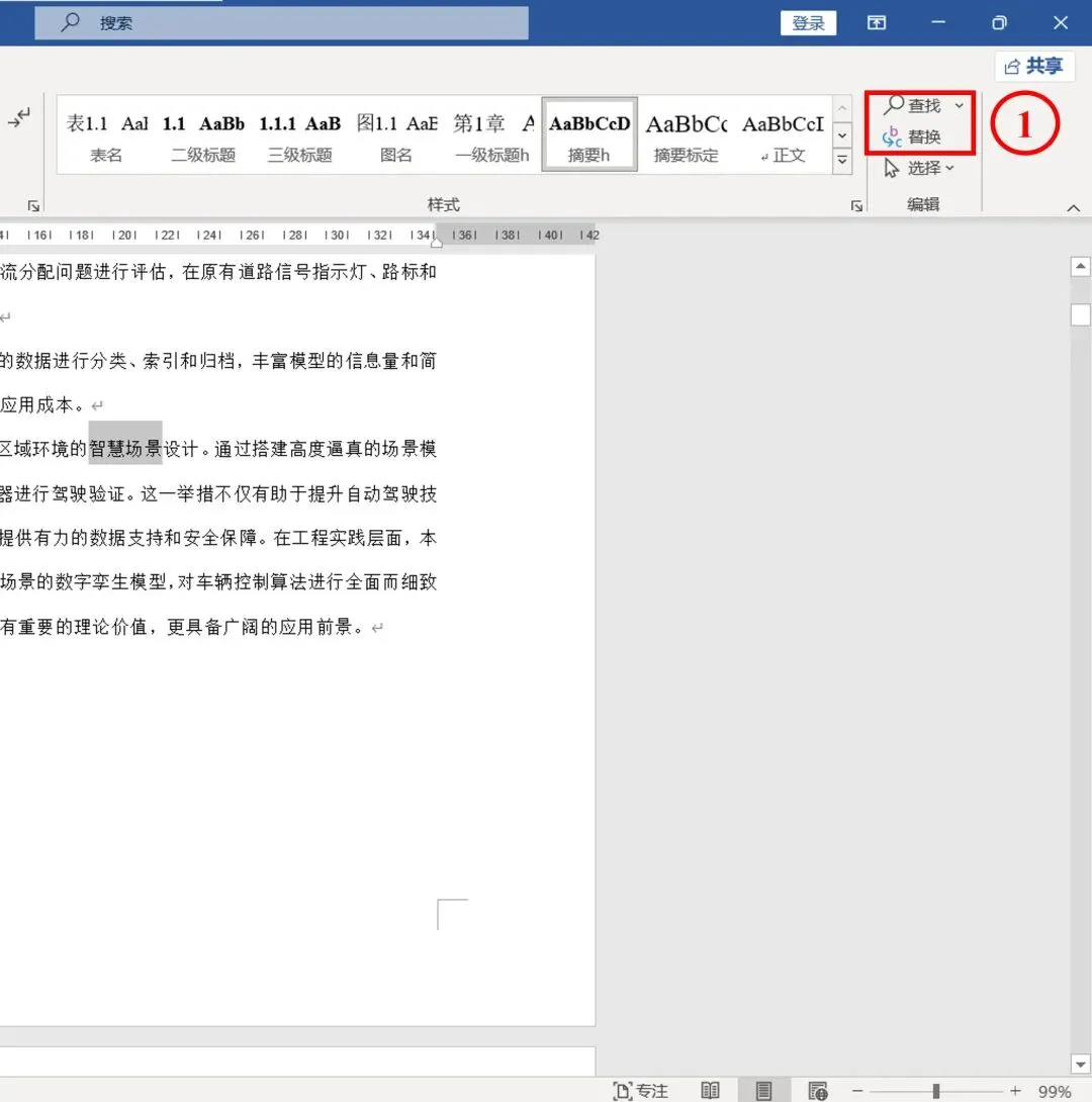 也可以通过点击【查找或者替换】→【查找内容】→【替换内容】完成功能。