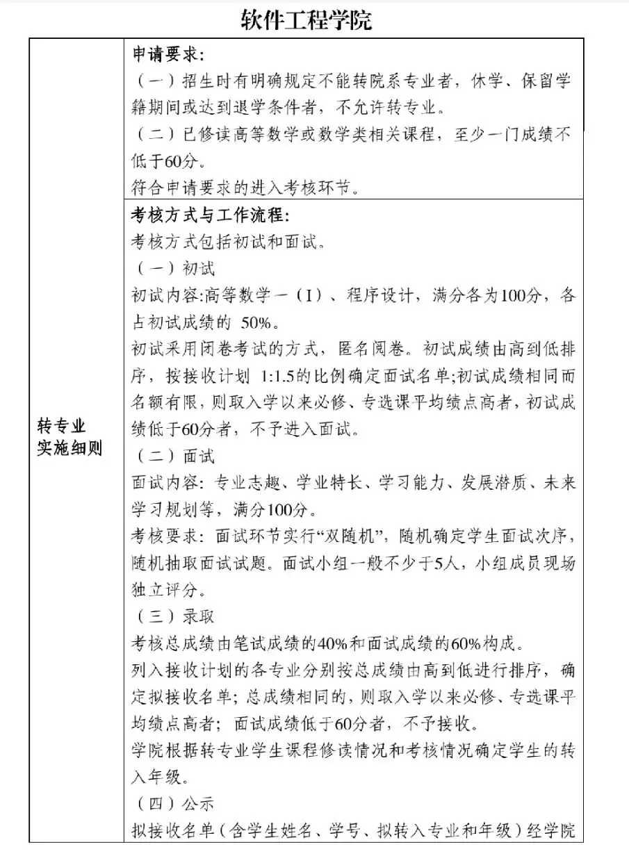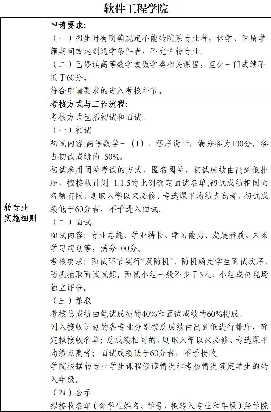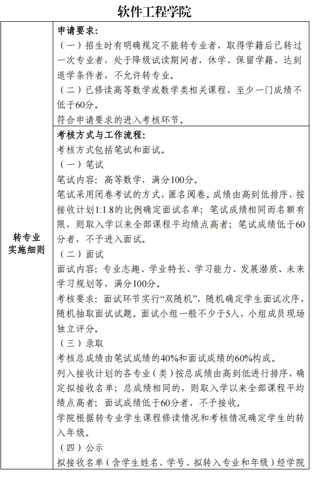 【软件工程学院2025年本科生转院系专业(面试)考核通知】