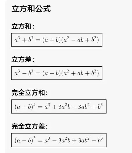 回忆补充:我还记得最后一道大题考了立方和、立方差、完全立方和、完全立方差中的其中一个公式,大家可以关注一下;还有图一中四个公式中的其中一个,因为考前记忆过好多遍所以印象比较深。