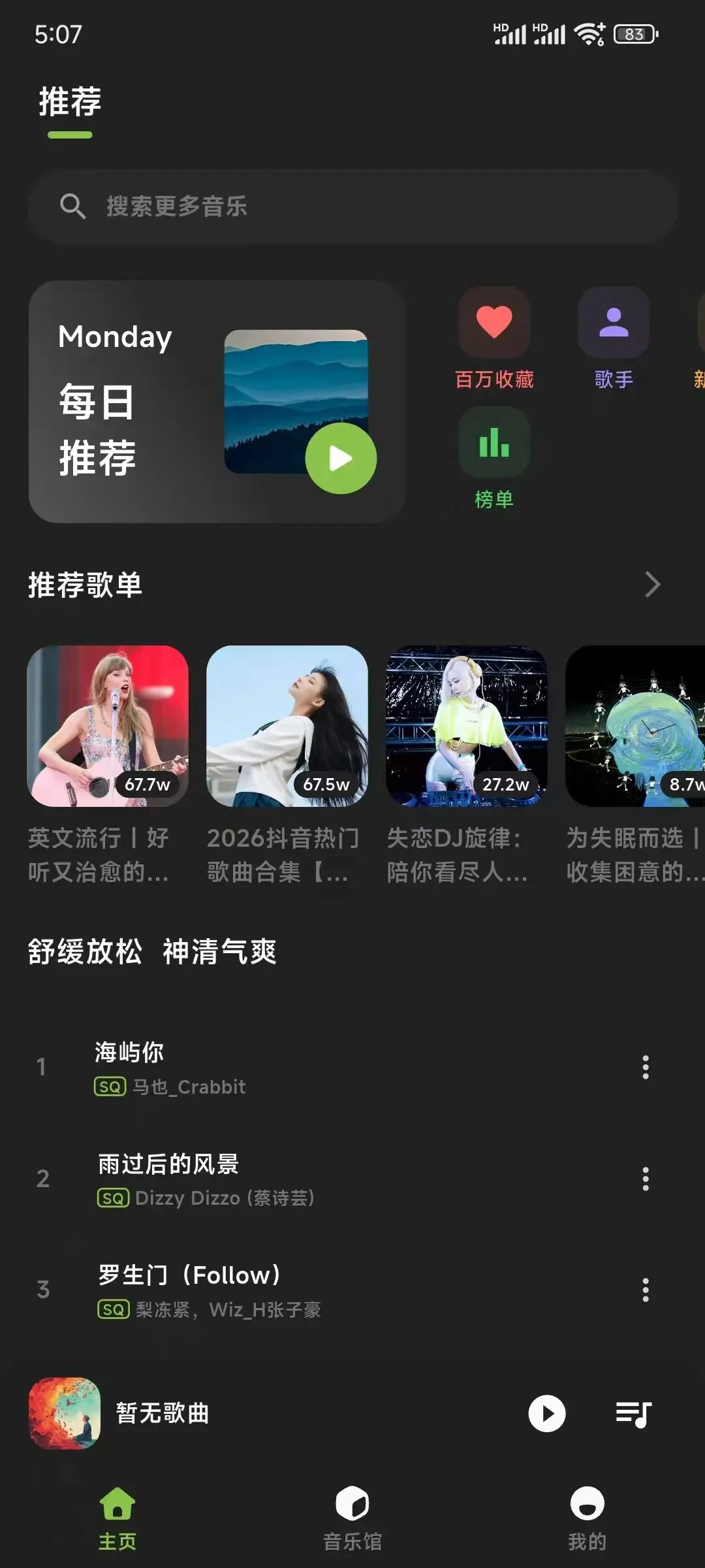 内置热歌榜、新歌榜、飙升榜等多种权威榜单,最近什么歌火、什么歌好听一目了然,不用到处挖歌,打开就能跟上流行节奏。