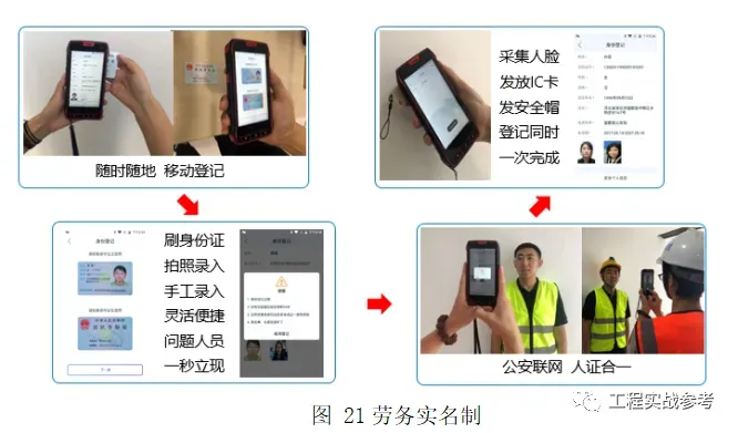 广联达劳务实名制系统应用物联网技术、人脸识别技术和云计算技术,帮助本项目提升人员管理能力,防范人员用工风险。除了解决基本的实名登记、门禁考勤外,创新的结合安全帽,实现场区定位,并辅助项目做好出入口人员和安保管理.
