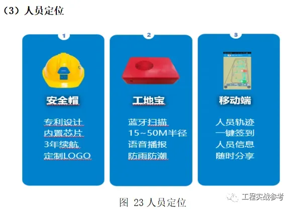 人员定位工地宝布置,主要布置在大门、加工厂、坡道、主干道等人员必经处或人员密集处,工地宝覆盖范围100米,一期布置18处,后期随施工阶段新增和调整。