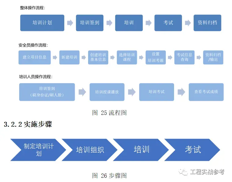 安全教育培训由安全教育箱和培训管理平台联合实现。培训前,工人实名制签到后,人员信息即可通过云服务与管理平台关联;在培训现场,安全员利用便携式安全教育箱完成培训考试,工人考试信息同样通过云服务上传与平台工人信息关联;考试后,平台可自动完成数据分析,并能有效利用培训结果数据使企业领导能够更直观的了解工人安全教育培训情况。