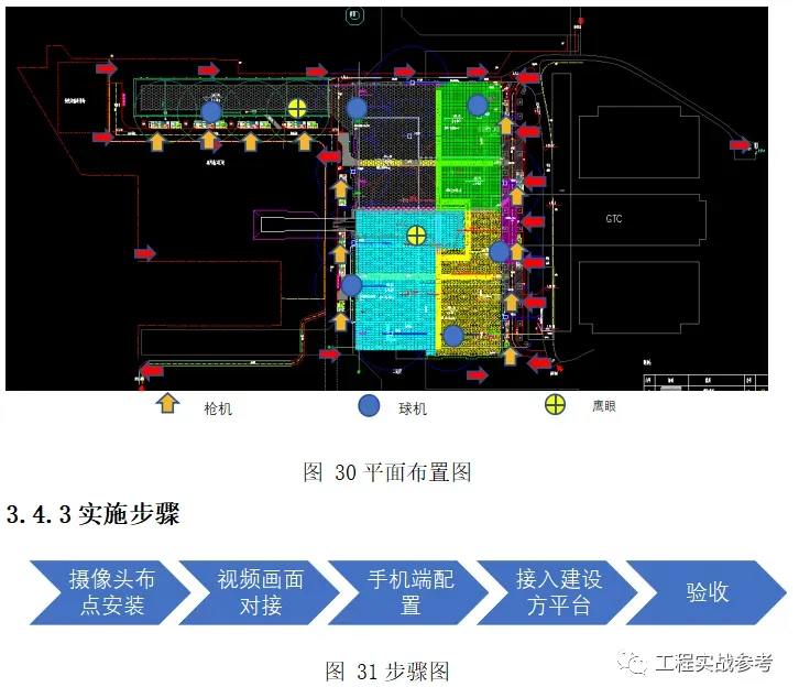 (3)枪机覆盖范围50米,球机覆盖直径范围100米,270度鹰眼覆盖观光塔以南全部施工区域。