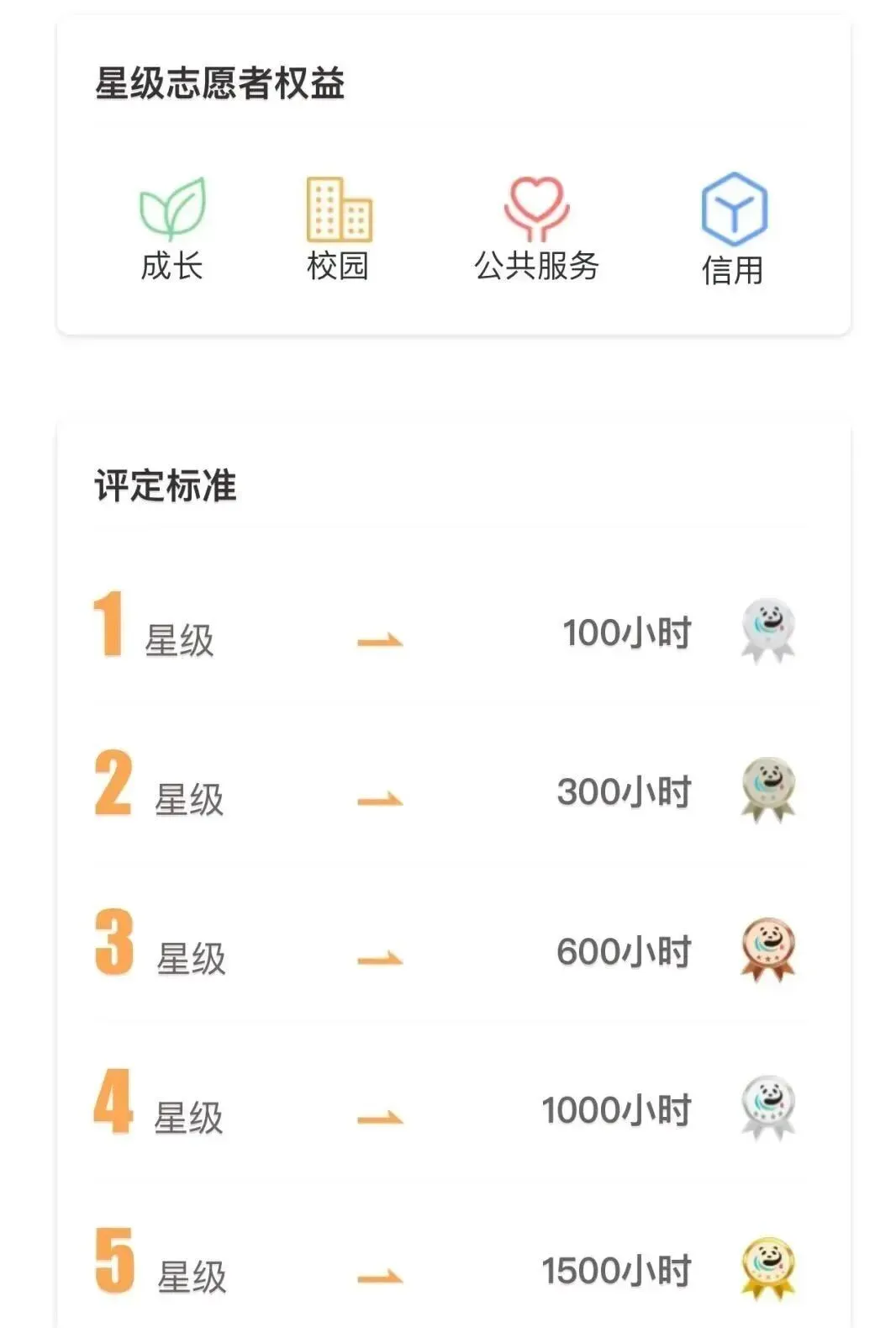 累计有1500个小时志愿时长,可被推荐成为5A级志愿者(国家优秀青年志愿者)。