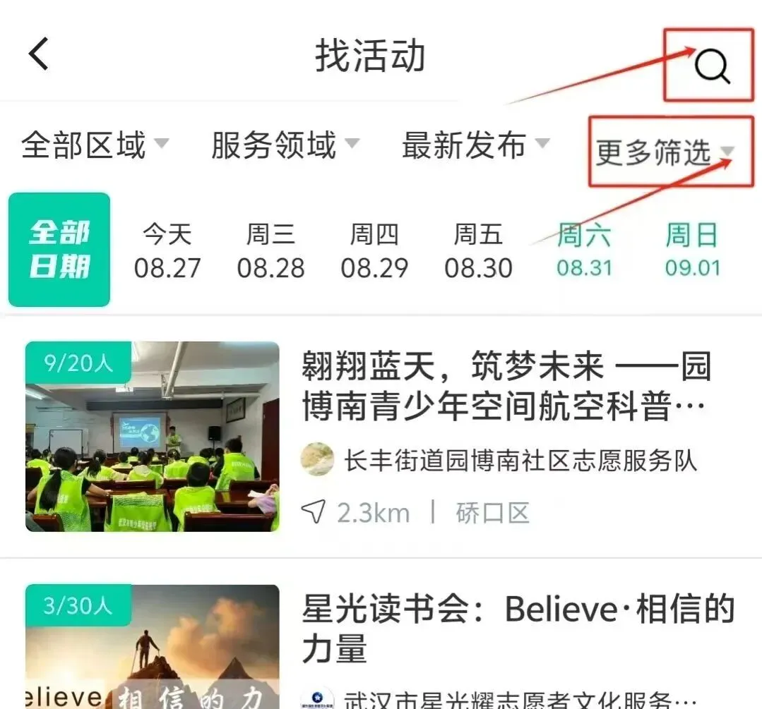 大家可选择按照“志愿服务时长”、“组织”、“活动”