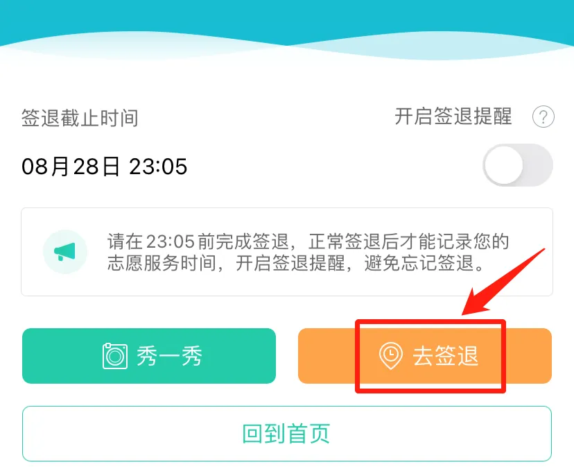 *如点击“强制签退”按钮,则本次志愿服务时长清零,请各位小伙伴在签退时候注意甄别。