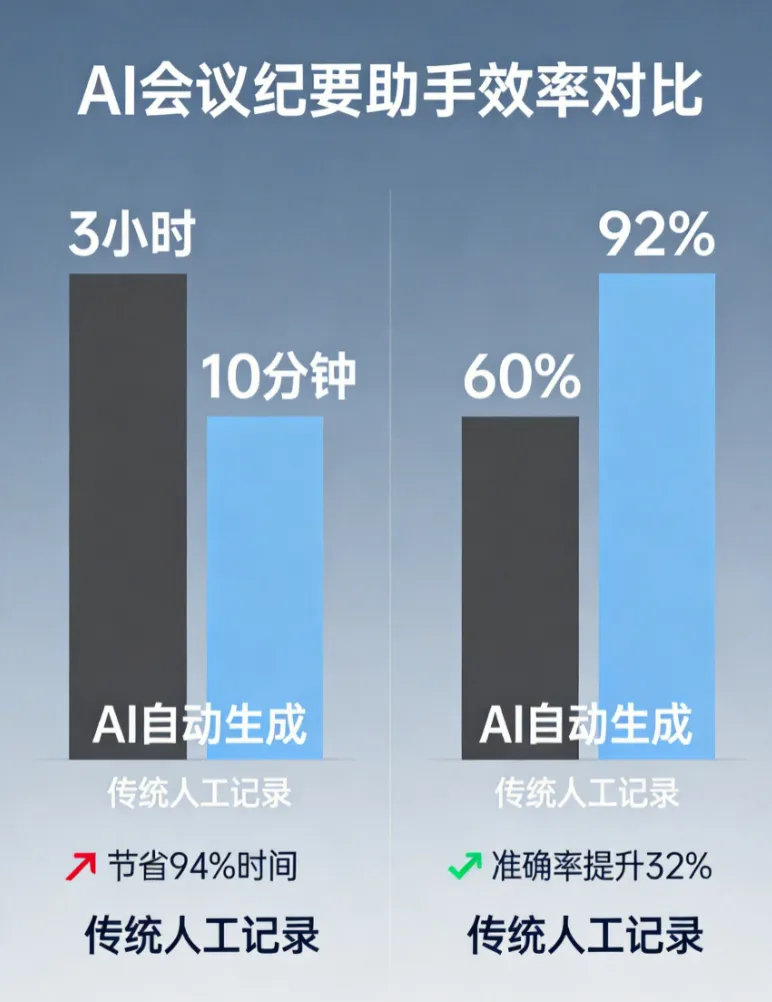 原来需要3小时机械性记录的时间,现在AI用10分钟完成基础工作。省下的时间,你可以用来深入思考、完善计划、深度沟通。