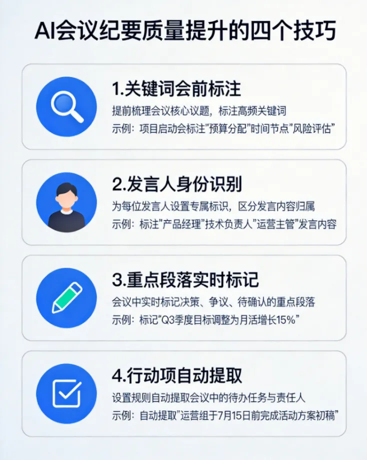 会议前导入专业术语列表,AI会优先识别,准确率从85%提升至95%+。