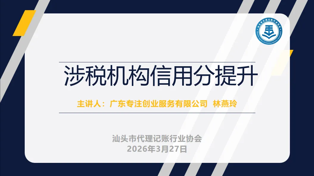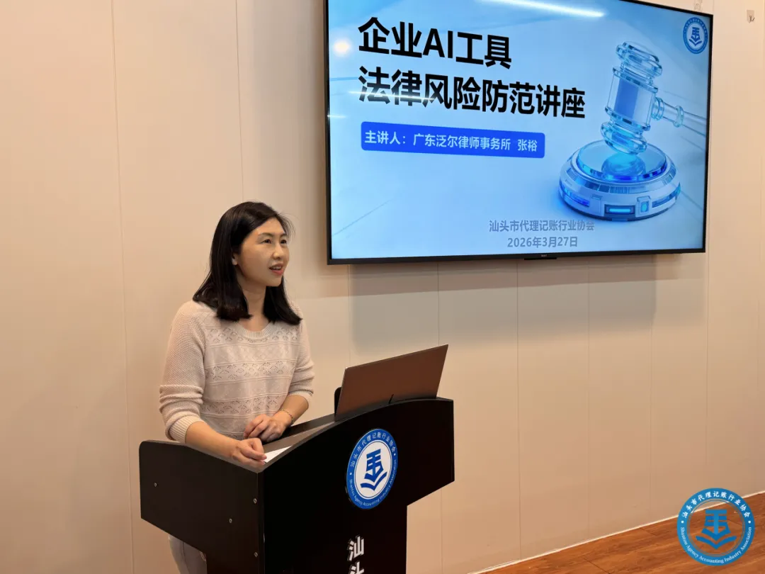 2026年3月27日下午,汕头市代理记账行业协会举办专题讲座,围绕“AI工具法律风险防范”与“涉税机构信用分提升”两个主题展开分享,为会员单位送上实用的行业干货。活动由秘书长陈蔚阳主持。