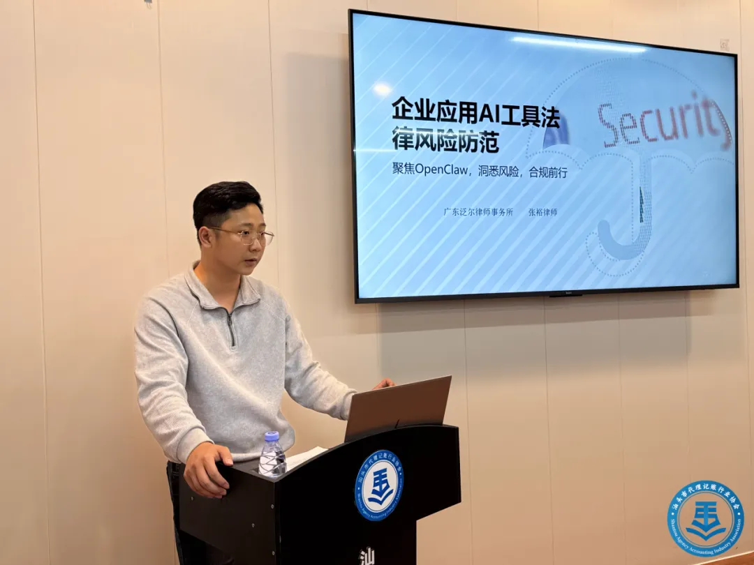 在AI工具法律风险防范讲座中,监事单位广东泛尔律师事务所张裕律师结合企业实际使用AI智能体的场景,分析了数据安全、知识产权、责任归属等方面可能面临的法律风险,并提出沙箱隔离、最小权限、人工复核等防控建议,帮助财务人员更好地识别风险、规范使用。