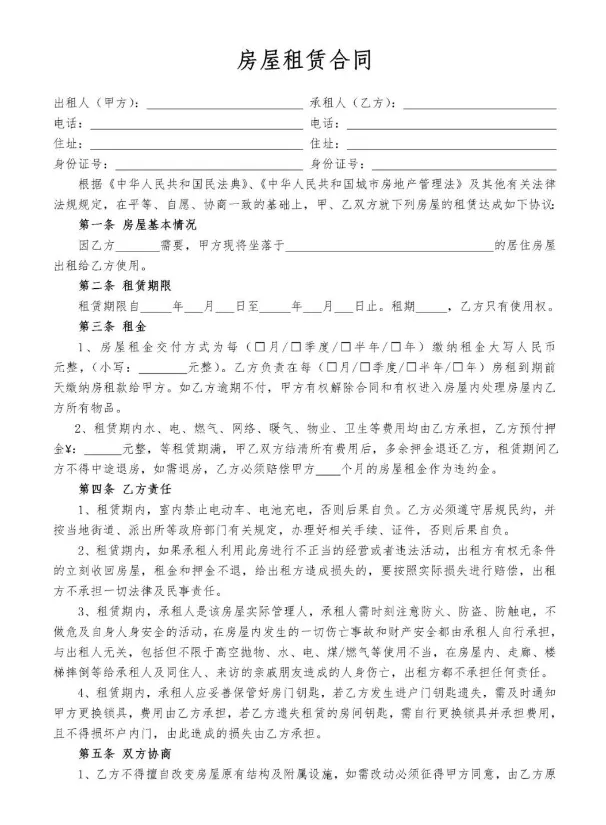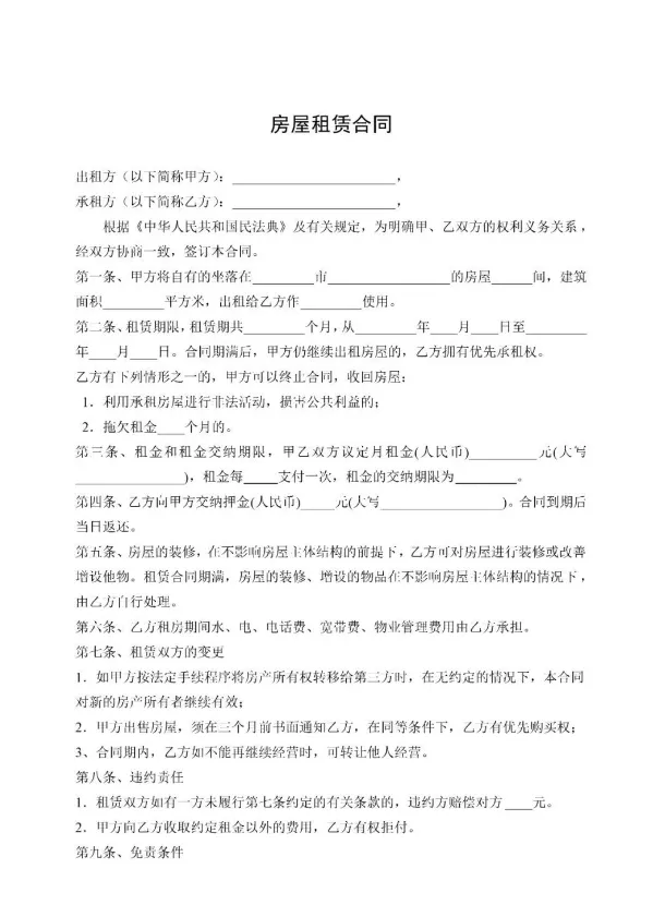 免费分享新版《房屋租赁合同模板》(电子版可编辑可下载可打印)【免费保存下载】