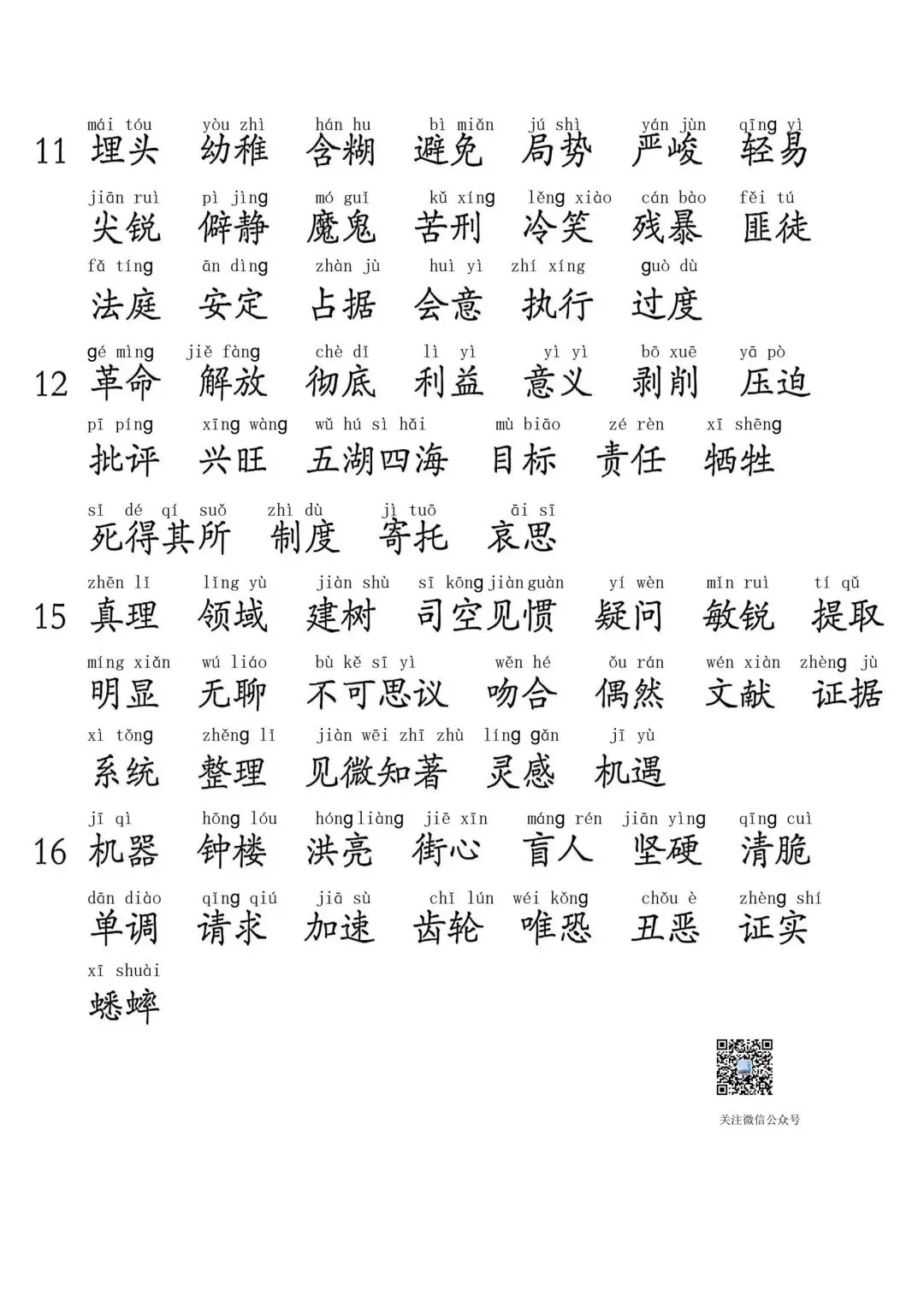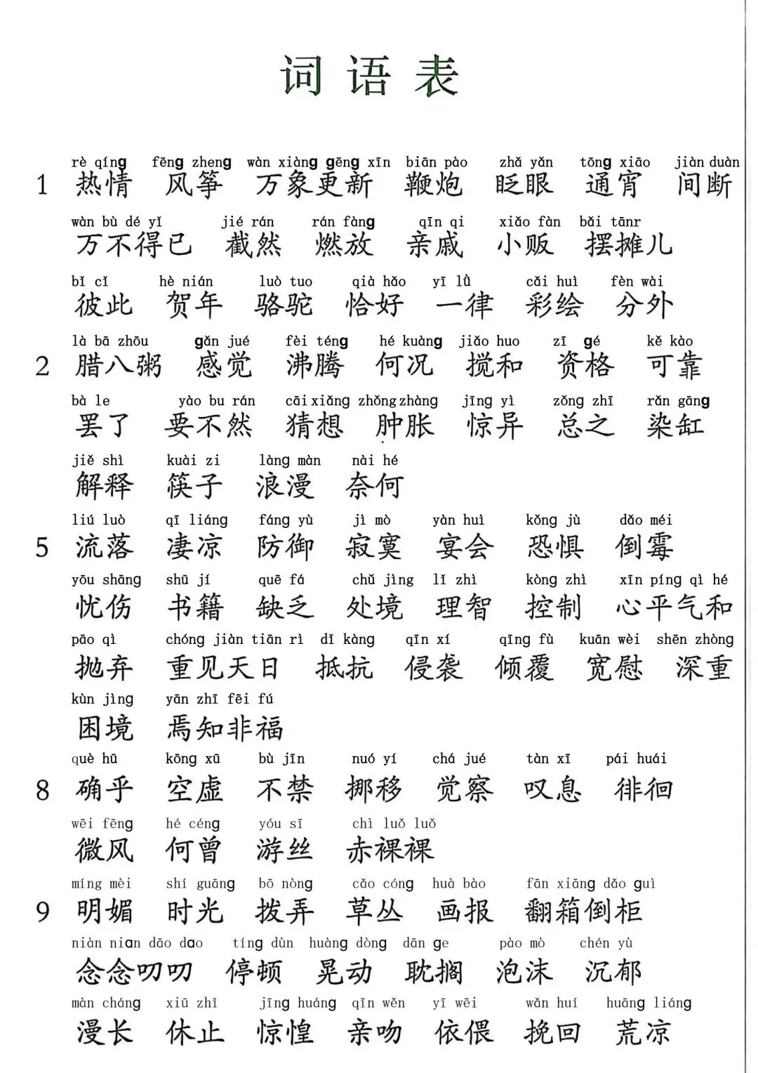 2026春六年级语文下词语表,高清图片,可直接打印!