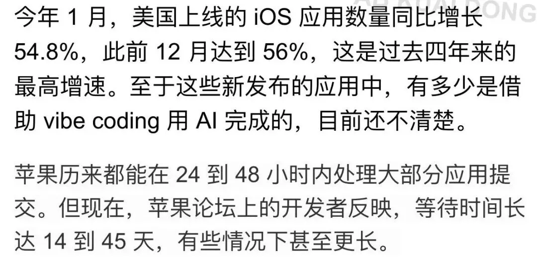 就在昨天,我看到一条引发全网共鸣的帖子:“苹果审核App的时间,变得极其漫长。”
