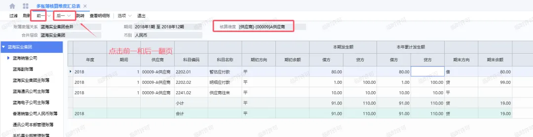 分页显示:勾选这个参数,每页只显示一个核算维度,那么其他核算维度数据点击前一和后一翻页查询。