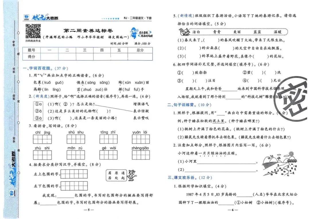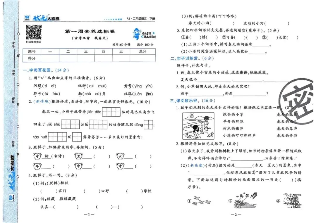 可下载丨2026春人教统编版1-6年级语文下册状元大考卷(含周考卷、单元卷、月考卷、期中卷、情景卷、期末卷)