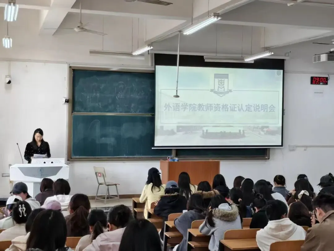 为帮助 2022 级英语师范专业毕业生明晰教师资格认定流程、掌握面试核心要点,3 月 27 日,外语学院召开教师资格认定说明会。学院相关负责人及2022级毕业生参会,会议由孟宇鸿主持。