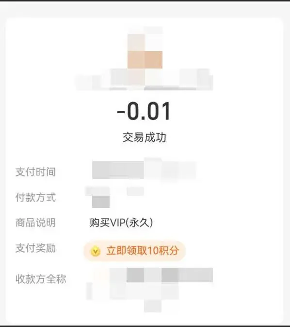 最后,我们回到前端走完支付流程。果然,调起支付界面时,订单金额已经被成功篡改!我们最终以 0.01 元的代价,成功购买了该 APP 的终身会员。最后编写报告提交平台换证书。