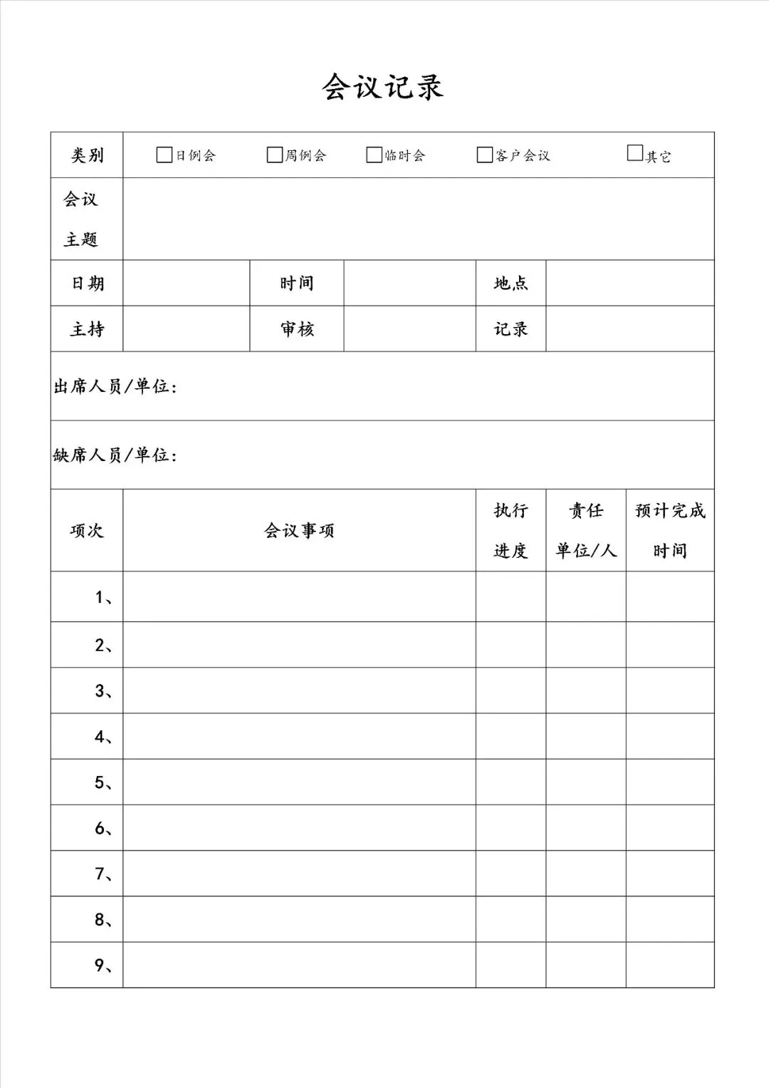 会议记录表word模板可编辑|免费分享