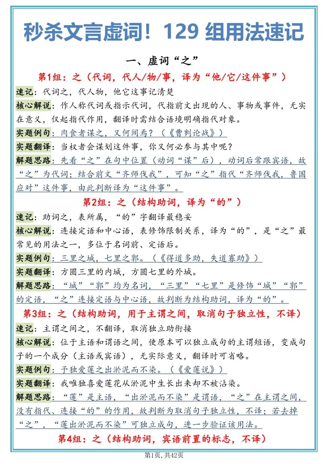 文言文虚词,129组用法速记可打印下来背诵!