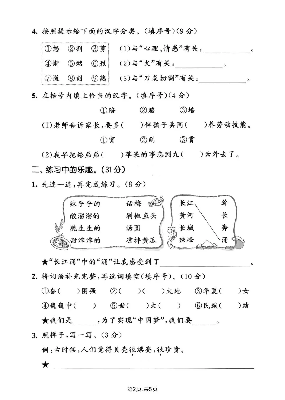 二年级下册语文第三单元拔尖测试卷含答案可打印
