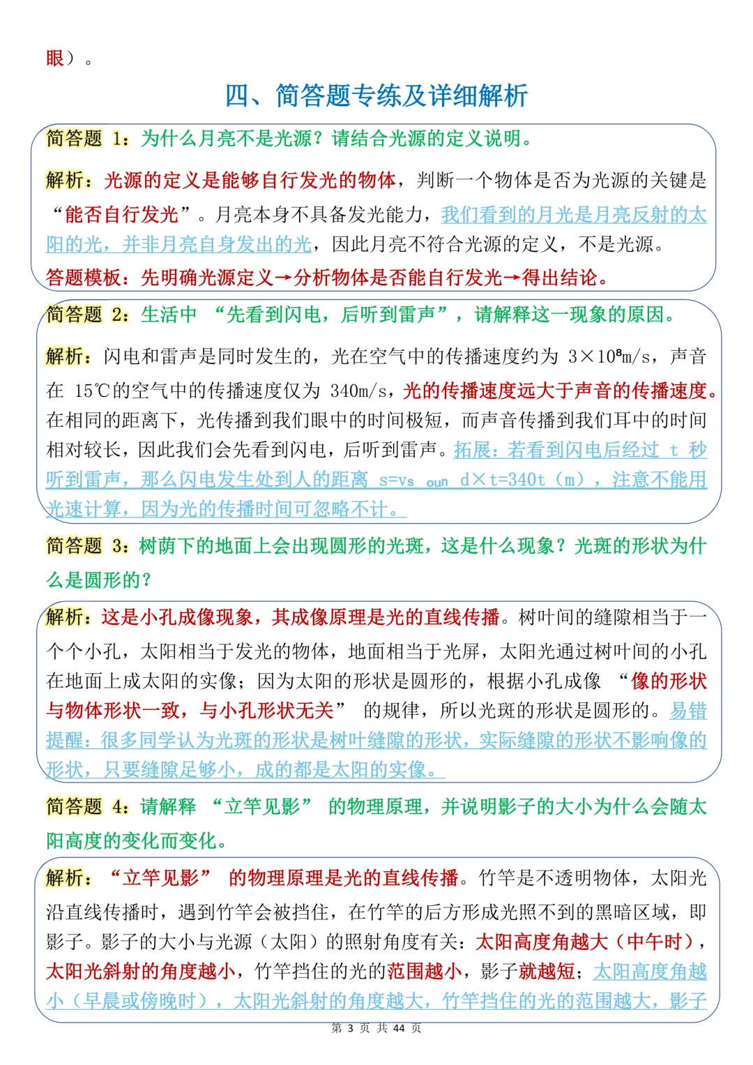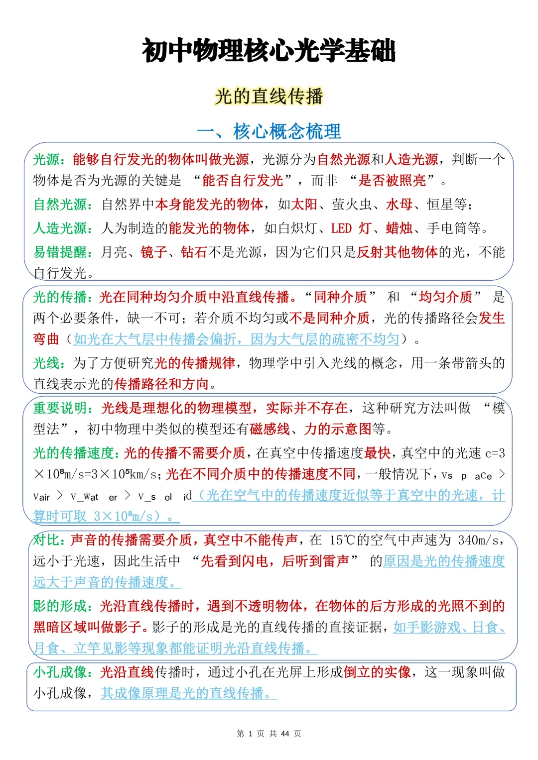 今天给大家整理了中考必备的【初中物理核心光学基础】,覆盖光的直线传播、光的反射、光的传播条件等全场景常考话题,附详细概念与例题解析,不管题目如何变式,都能精准应对,轻松拿下高分!