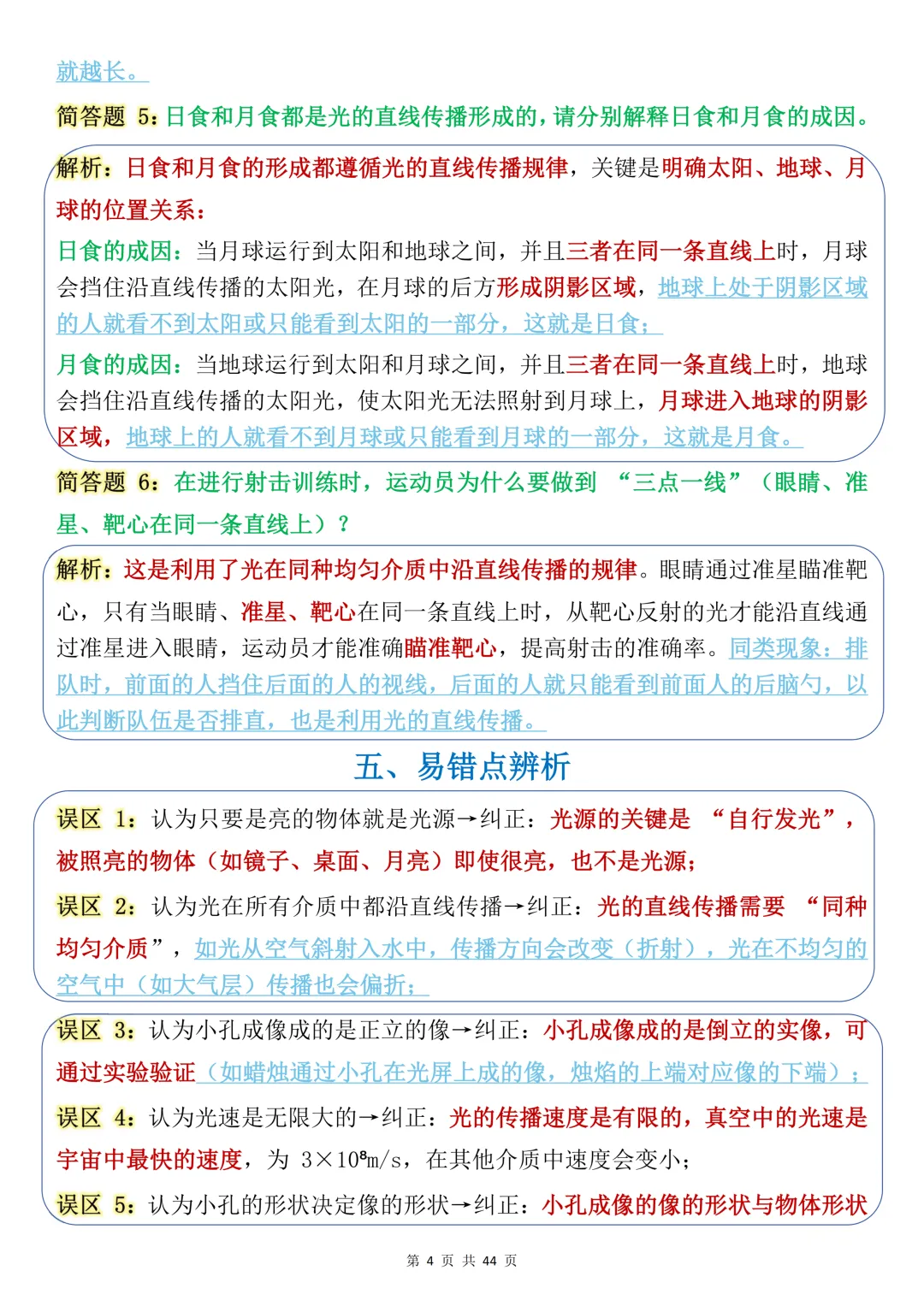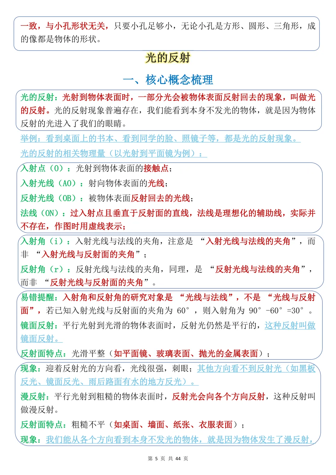 中考必背【初中物理核心光学基础】,可打印 快收藏