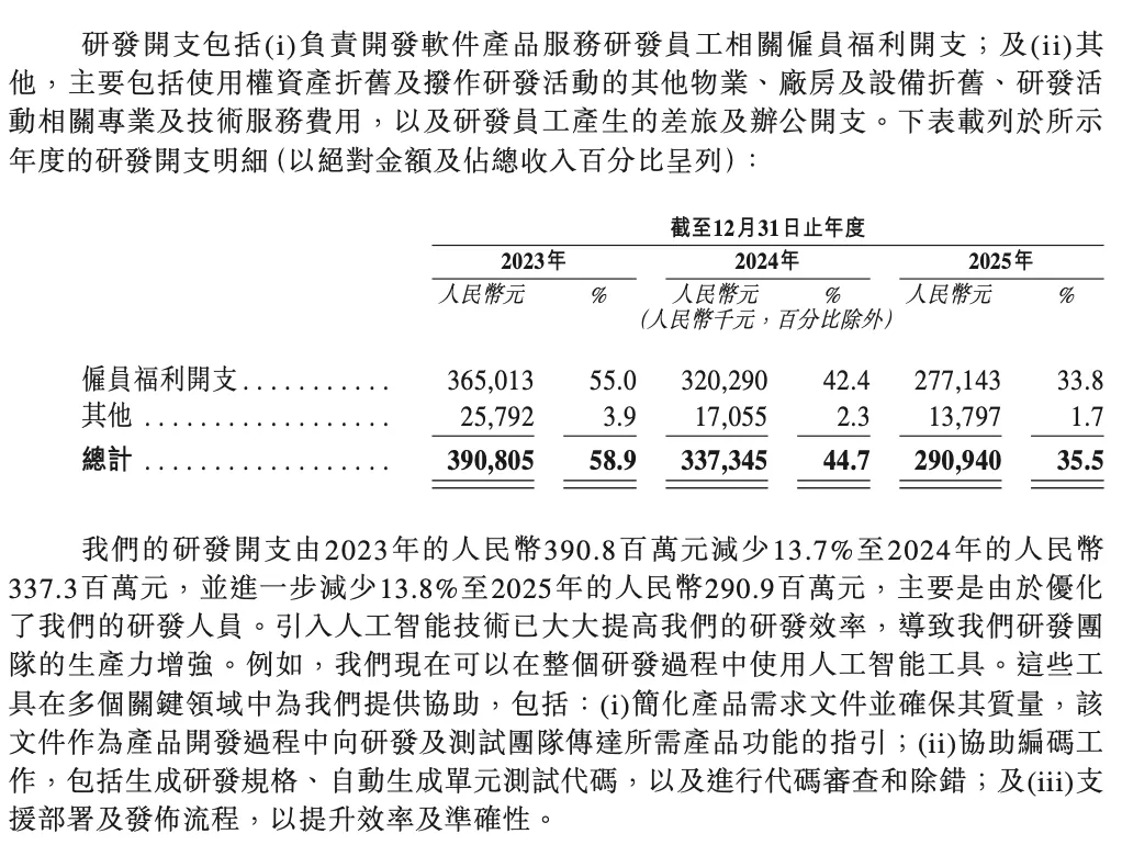 公司在招股书中解释,研发开支减少主要是由于优化了研发人员,引入了人工智能技术已大大提高公司的研发效率,导致研发团队的生产力增强。但这种持续收缩的研发投入,无疑为企业后续的技术竞争力埋下了隐忧。