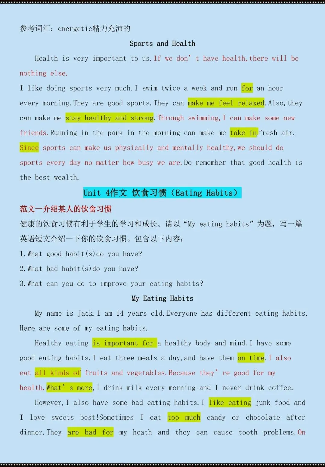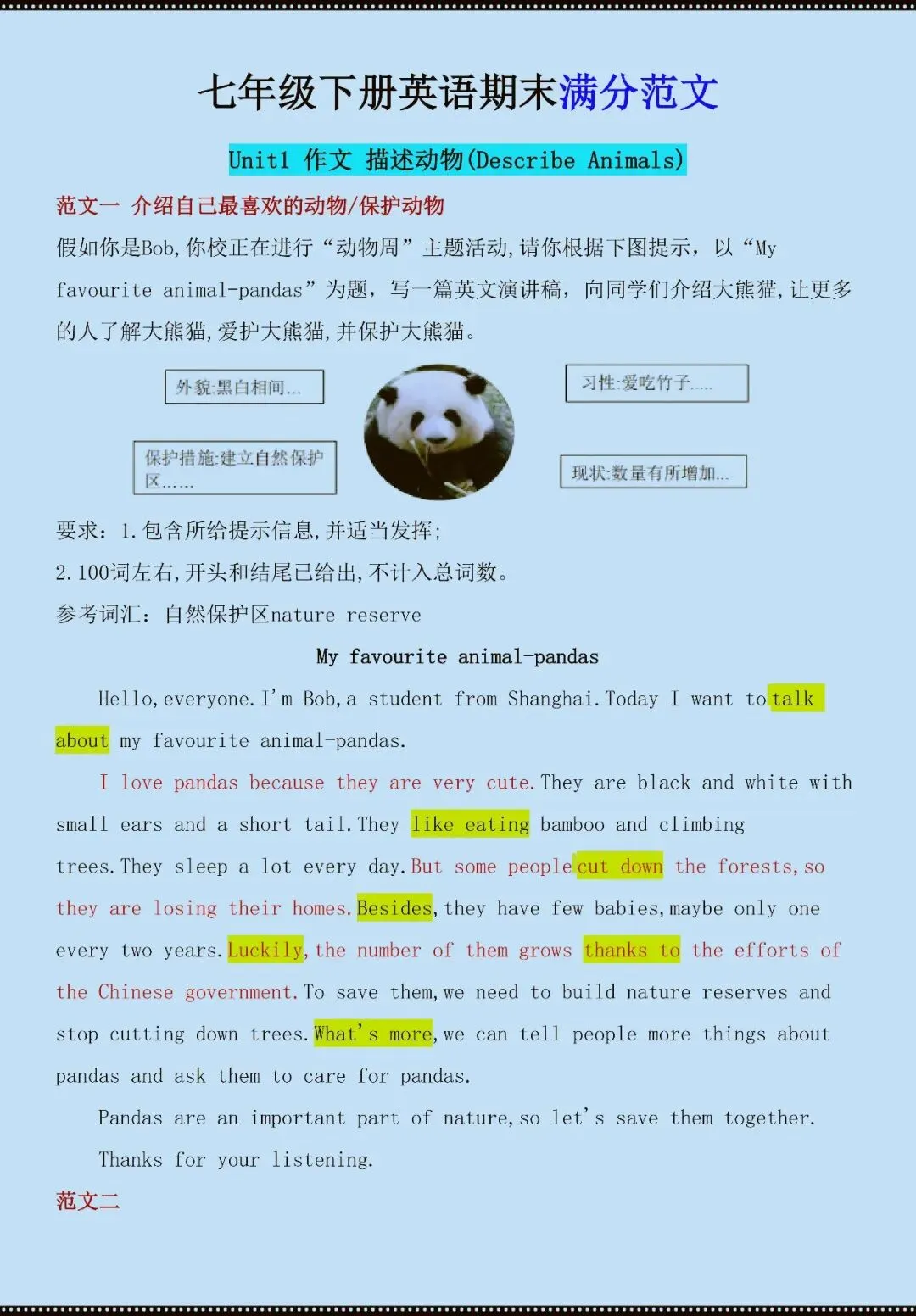 今天老师给大家整理了:七年级下册英语期末满分范文(电子版可打印)