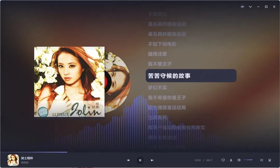 播放界面简洁清晰,还有歌词滚动,背景音浪动效。