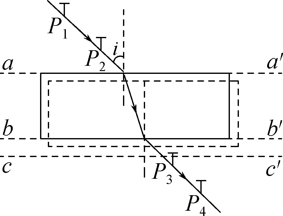 3. 如图所示,某同学用“插针法”测量两面平行的玻璃砖的折射率,他先在纸上紧贴玻璃砖画出参考线aa′和bb′,钉上大头针P1、P2,然后继续实验,并画出光路图.下列说法中正确的是( )