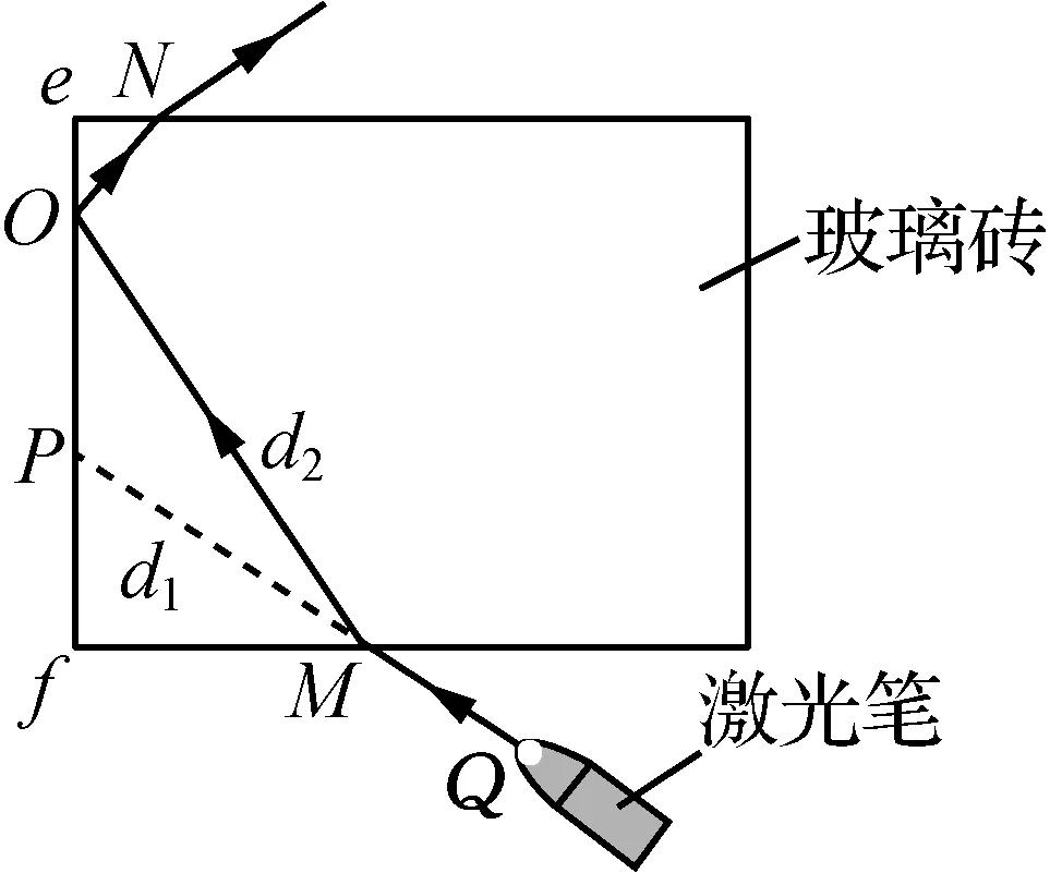 (2) ①激光笔发出的激光从玻璃砖上的M点水平入射,到达ef面上的O点后反射到N点射出.用大头针在白纸上标记O点、M点和激光笔出光孔Q的位置.