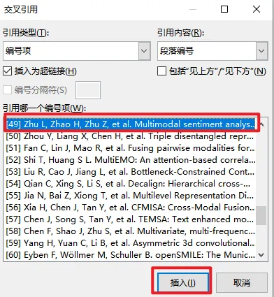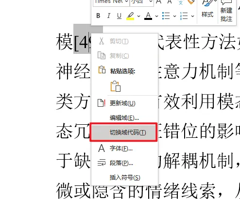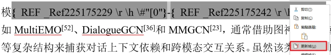 Word如何连续引用两篇以上的参考文献,例如[1-3]. 引用格式:[49-51] 1.如果我们想要在文献中插入[49-51]这样的引用格式,具体步骤如下: 2.插入首尾两篇参考文献[49]、[51] 3.得到的效果如下 4.然后点击对应的引用符号,右键选择“切换域代码”,将两个引用都进行这样的操作 5.得到如下的效果: 6.在下方图中所标注的位置分别插入\#”[0″和\#”0]”: 7.得到效果如下: 8.注意插入的符号与原本的符号是隔有一个空格的: 9.在两个花括号之间再加入一个“-”: 10.然后选中这两个域,点击“更新域”: 11.此时就得到了想要的格式: 12.如果想要引用格式变成上标,就按快捷键“ctrl+shift+=”,具体效果如下: 13.如果想要引用格式变成下标,就按快捷键“ctrl+=”,具体效果如下: