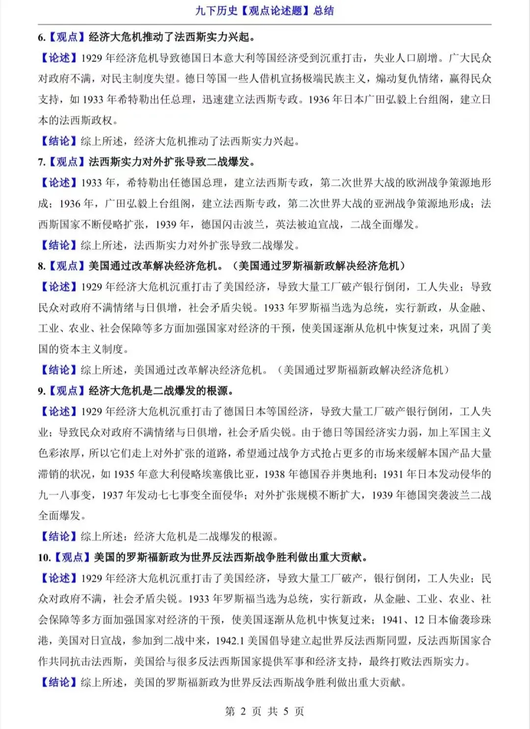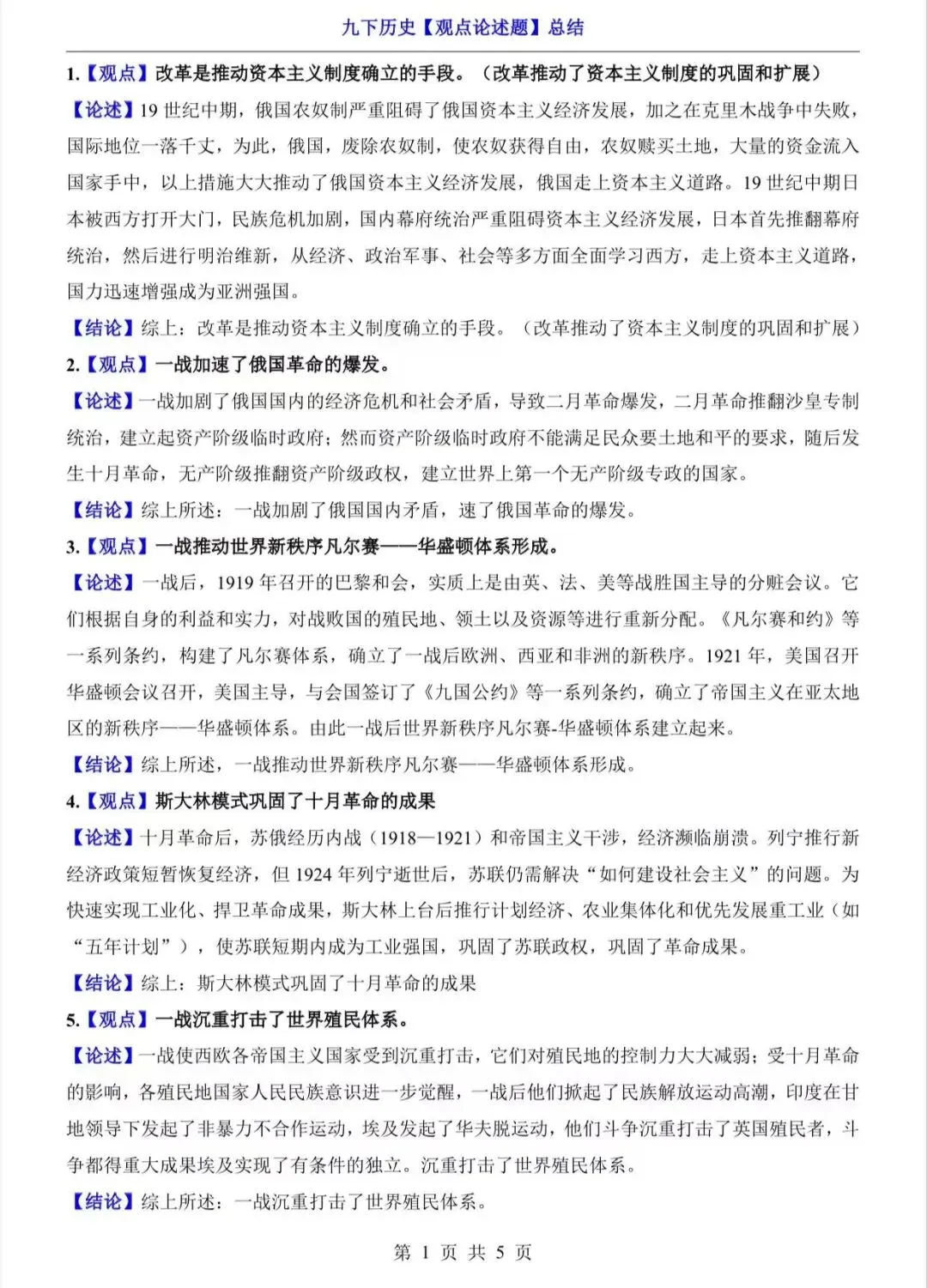 九年级下历史观点论述题总结/电子版可打印 以下为部分截图,具体看完整PDF文件 (温馨提示:文末有电子版领取方式) 领取完整电子版: ①:点一点右下角的“赞”和“在看”,感谢支持! ②:点击“关注”,回复资料领取