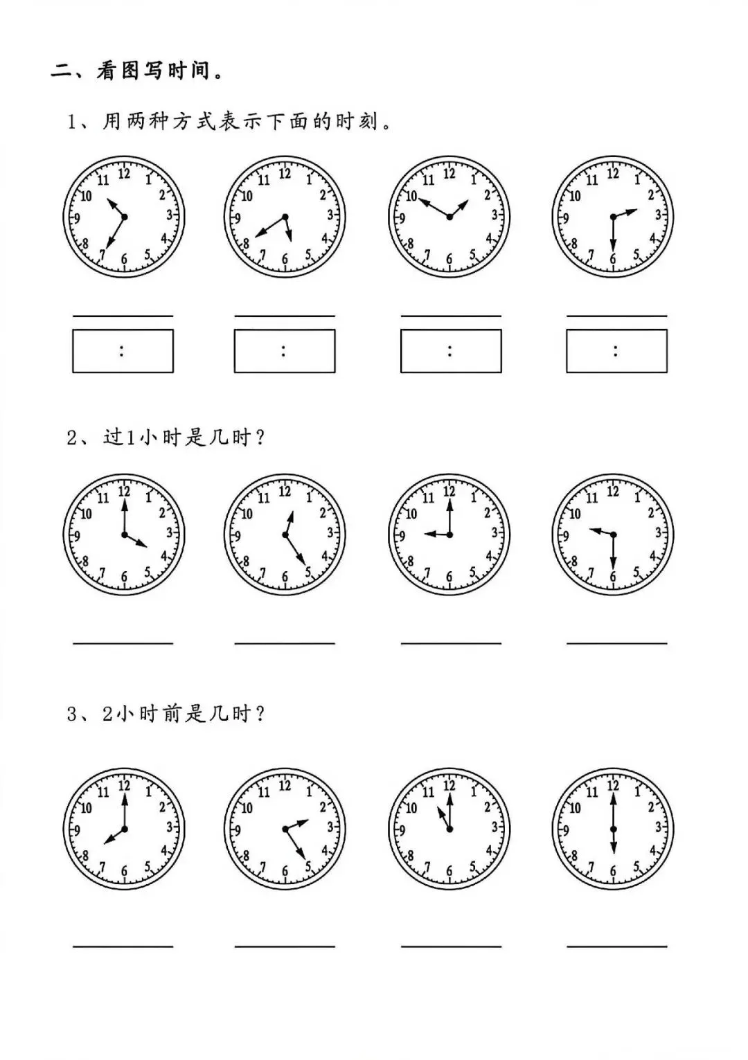 可下载丨26春二年级下册数学认识钟表培优训练,电子版可打印