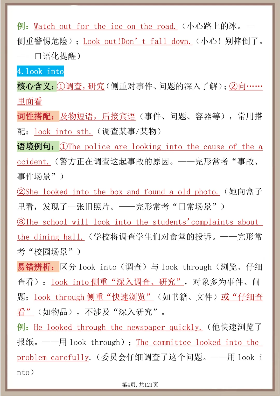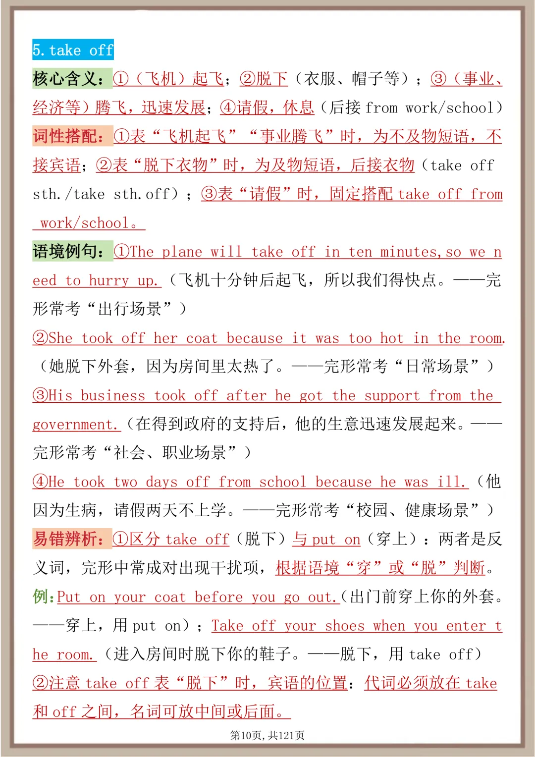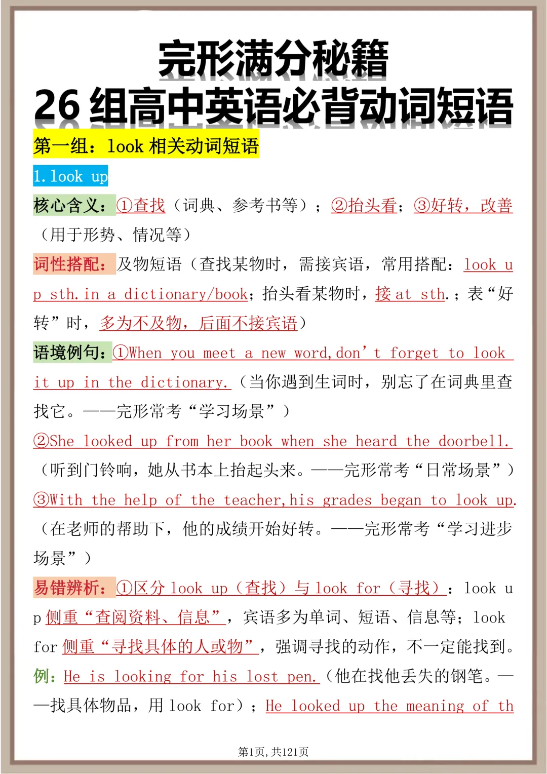 今天给大家整理了高考必备的【26组高中英语必背动词短语】,覆盖 take /look/go /get/keep /break/put /turn/give 等核心动词,附详细含义、经典例句与易错辨析,不管题目如何变式,都能精准判断,轻松拿下完形高分!