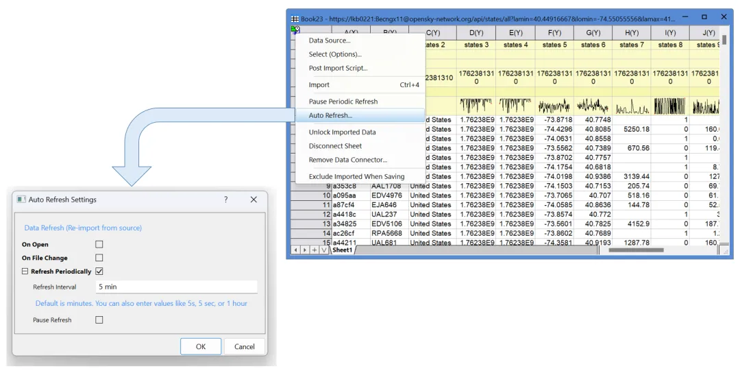 现在,您可以将数据连接器设置为定期从数据源重新导入数据。这在数据源发生变化或添加更多数据,而您希望在Origin中定期更新这些数据的情况下非常有用。