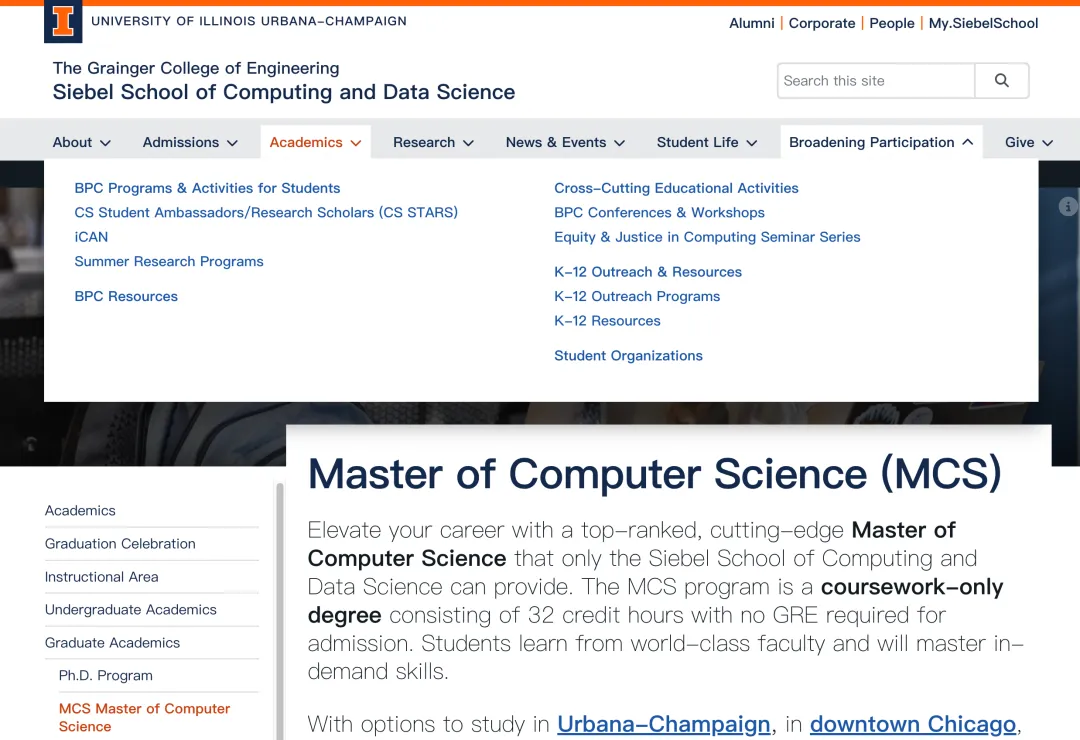 项目官网🔗:https://siebelschool.illinois.edu/academics/graduate/professional-mcs