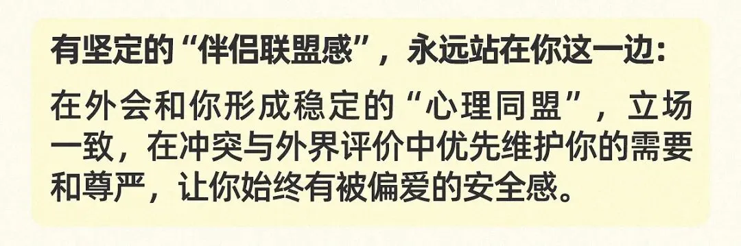 而支持型伴侣,正是带来这份力量的人。ta会成为你最稳固的依靠,让你带着满满的底气与安全感,勇敢走向外面的世界。