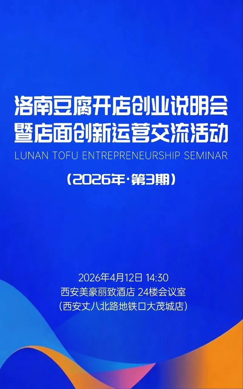 洛南豆腐开店创业说明会暨店面创新运营交流活动(第三期) 洛南豆腐开店创业说明会 暨店面创新运营交流活动 2026年(第三期) 时间:2026.4.12日下午14:30 地址:西安美豪丽致酒店24楼会议室 (西安丈八北路地铁口大茂城店) 联系电话:13572091862 寻求志同道合的合作伙伴🤝,一起打造乡村特色产业品牌! 关注我,了解更多精彩内容!