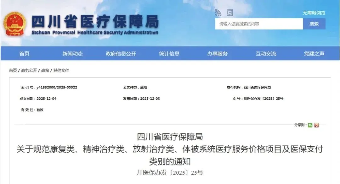 为贯彻落实国家医疗保障局改革指示,构建内涵边界清晰、适应临床诊疗、便于评价监管的价格项目体系,根据国家医疗保障局发布的30余项《医疗服务价格项目立项指南》,四川医保局从去年以来陆续规范了诸多系统医疗服务价格项目及医保支付类别,比如康复、精神、放射、呼吸系统、心血管系统、泌尿系统、神经系统、器官移植、中医、妇科、产科等20余种类别。