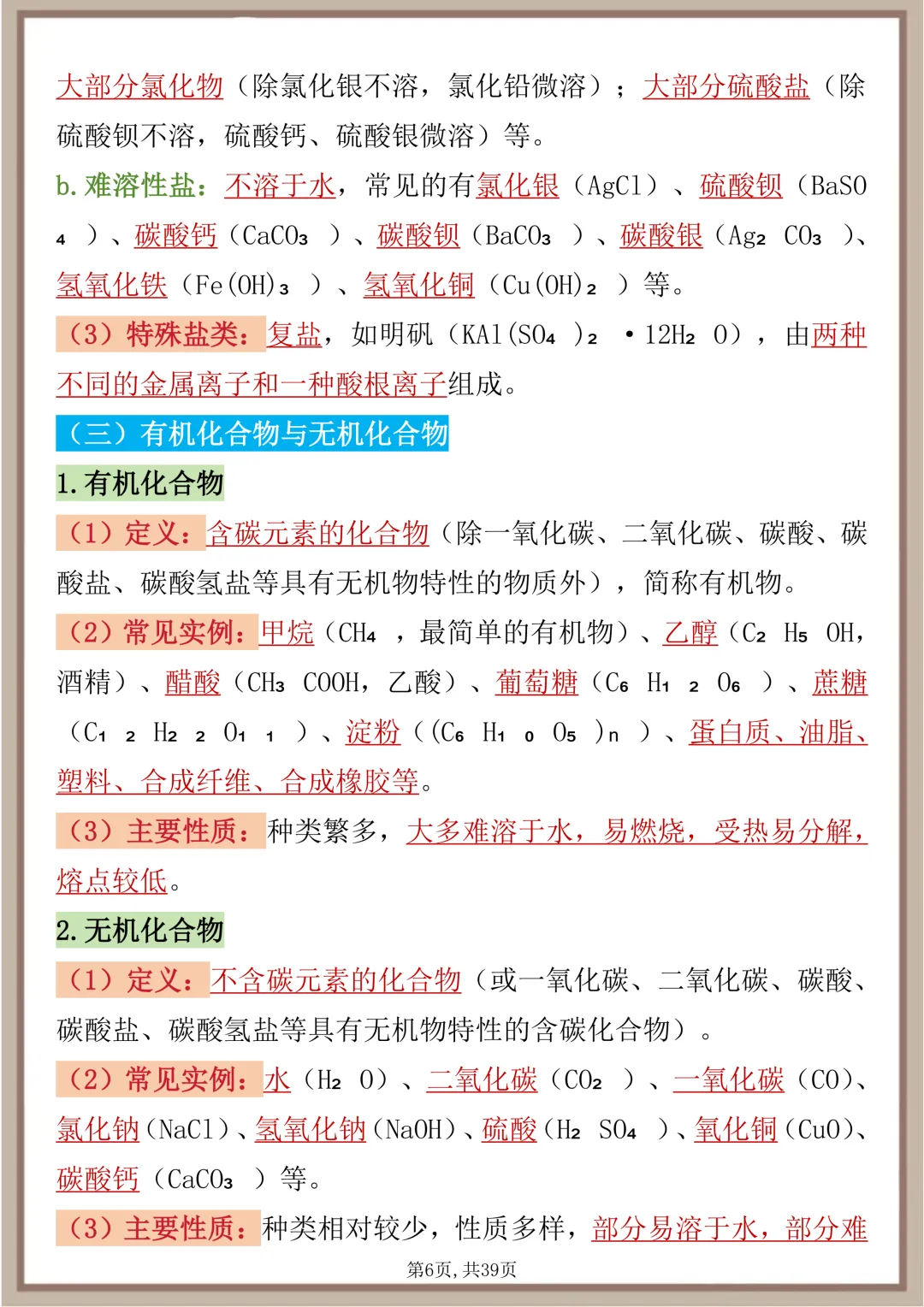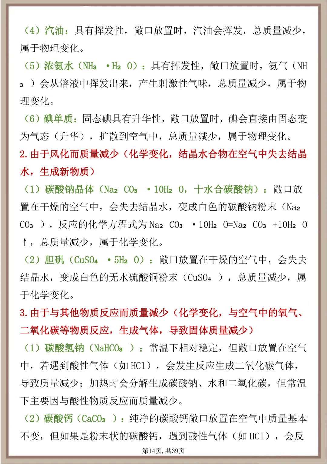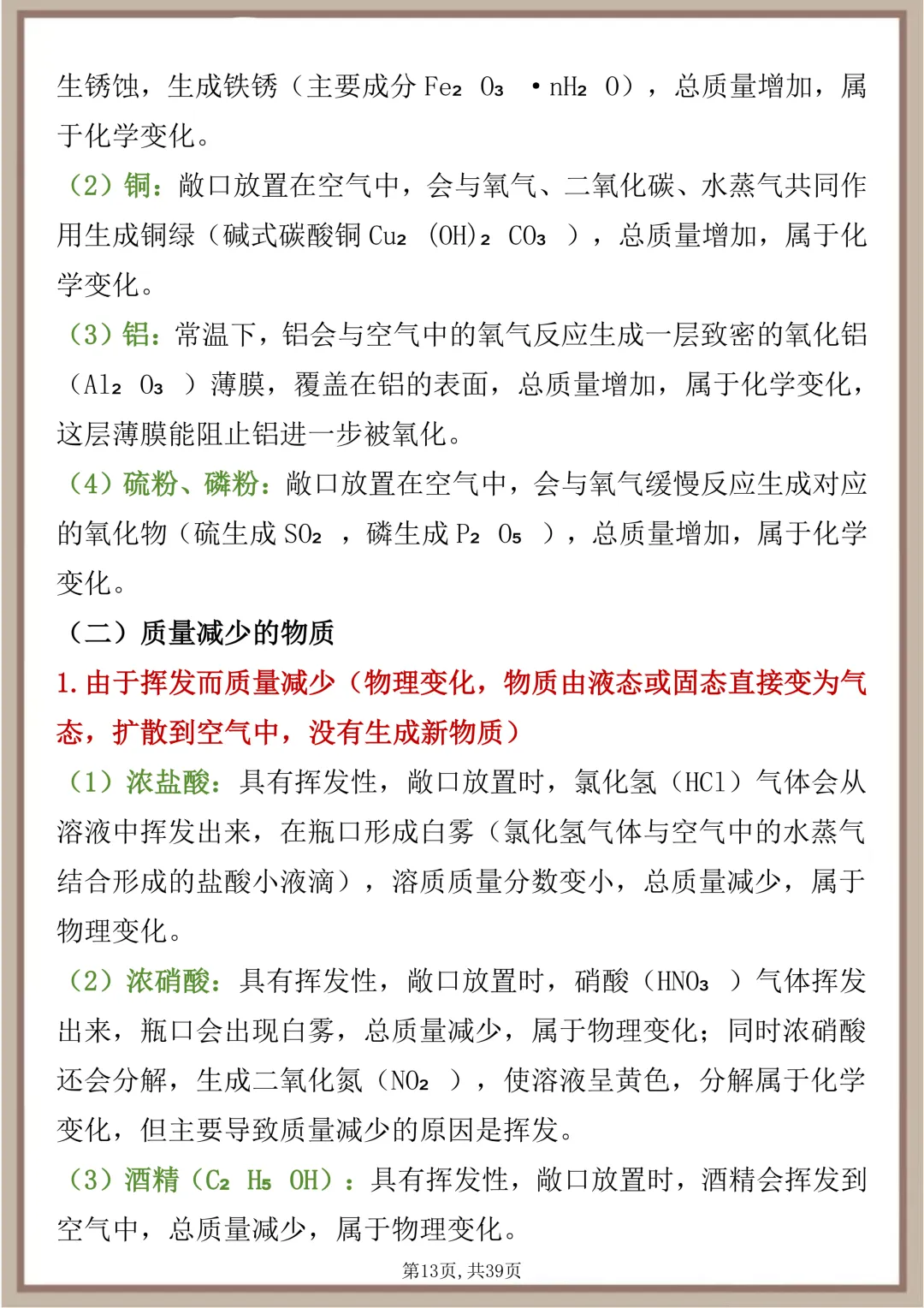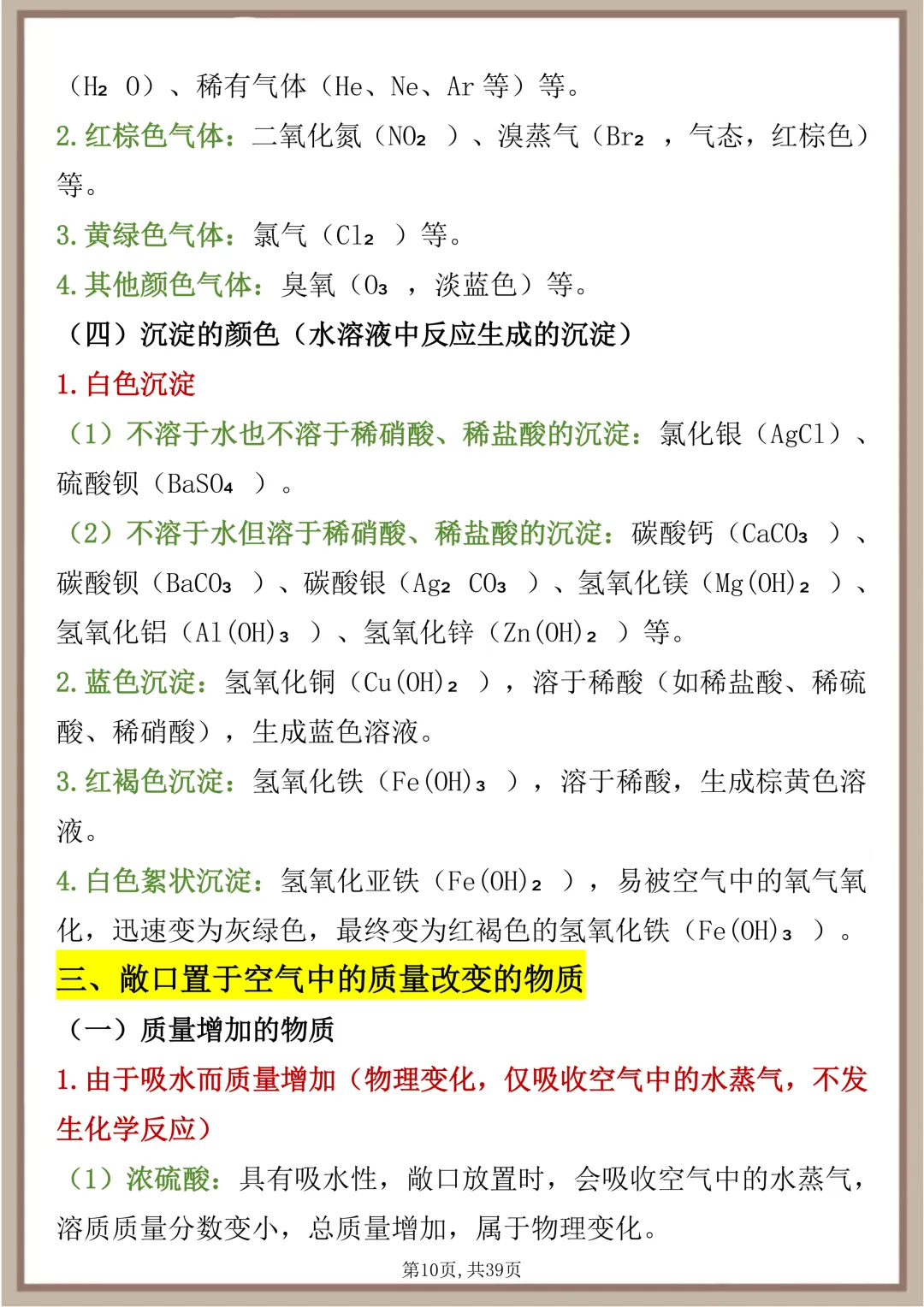今天给大家整理了中考必备的【中考化学必备5大类考点精编】,覆盖常见物质分类、物质颜色、敞口放置质量变化、物质检验、化学核心之三全类型常考考点,附详细原理、易错辨析与完整知识点,不管题目如何变式,都能精准应对,轻松拿下高分!