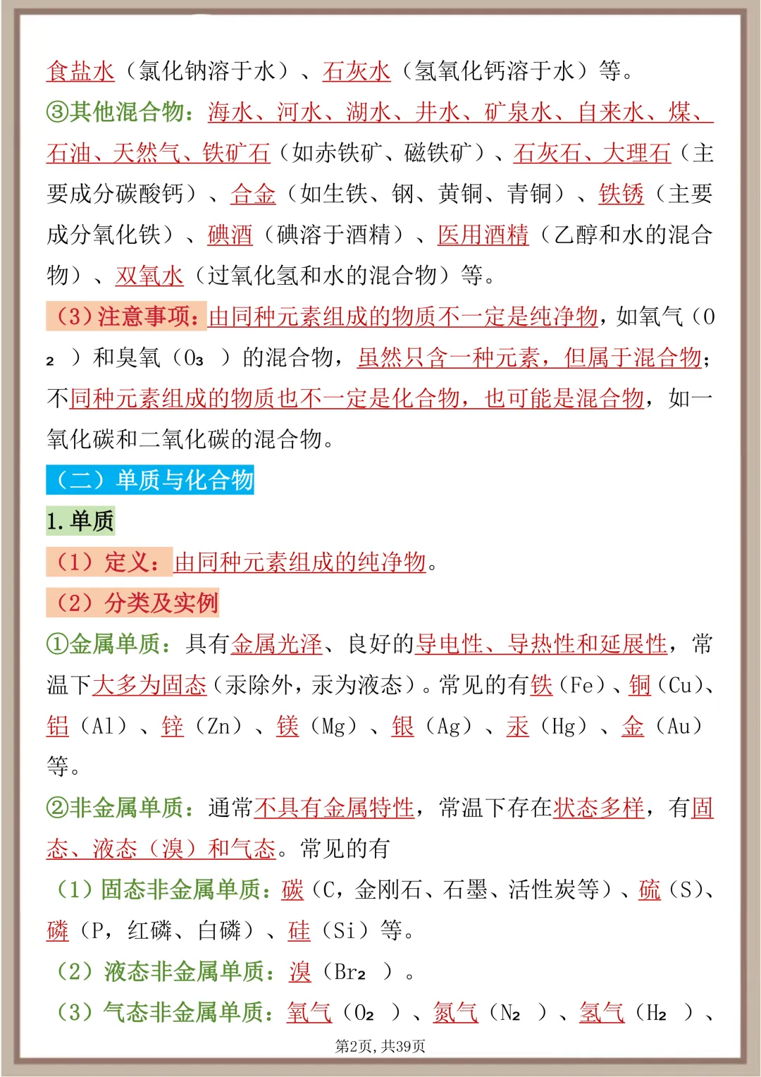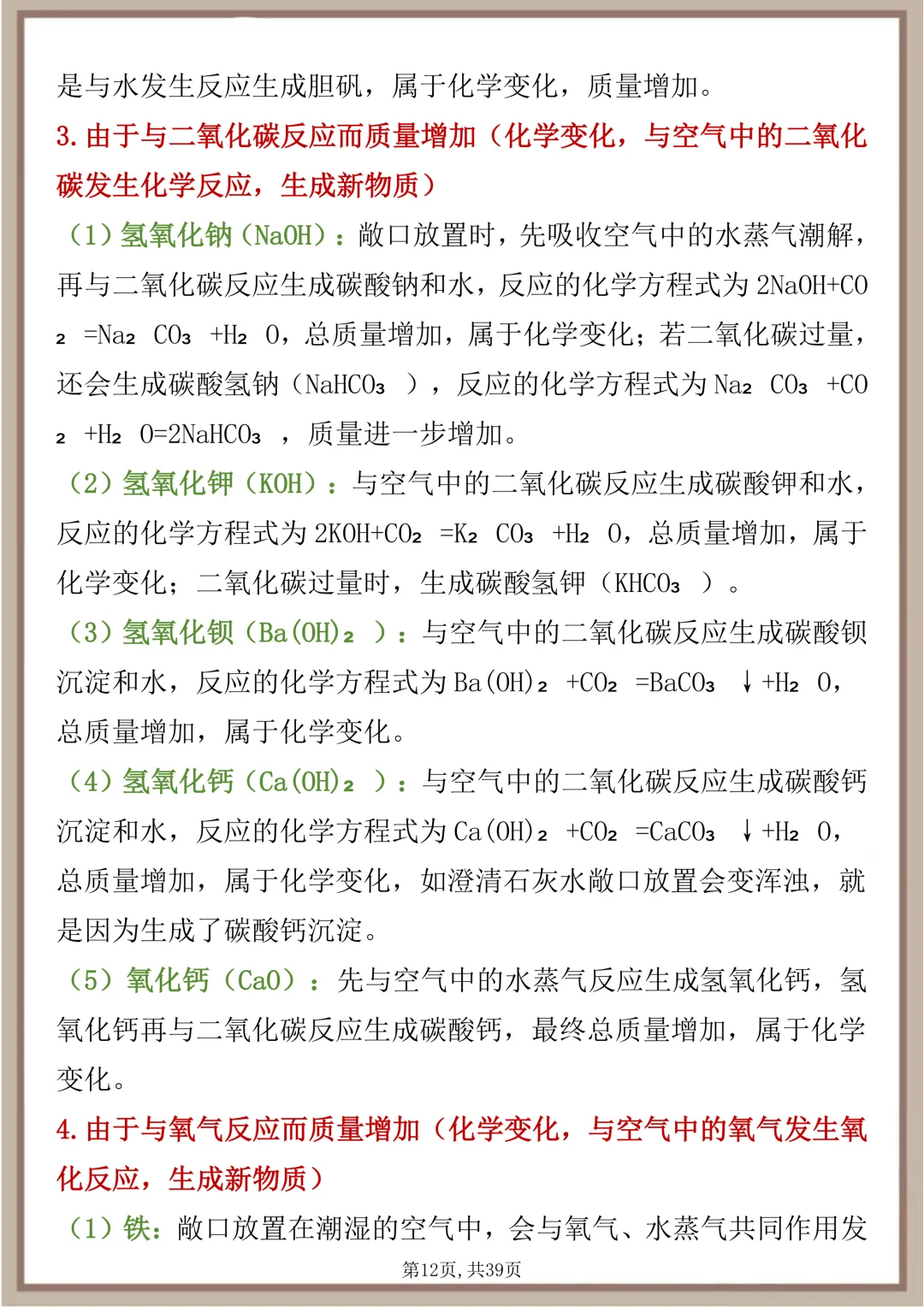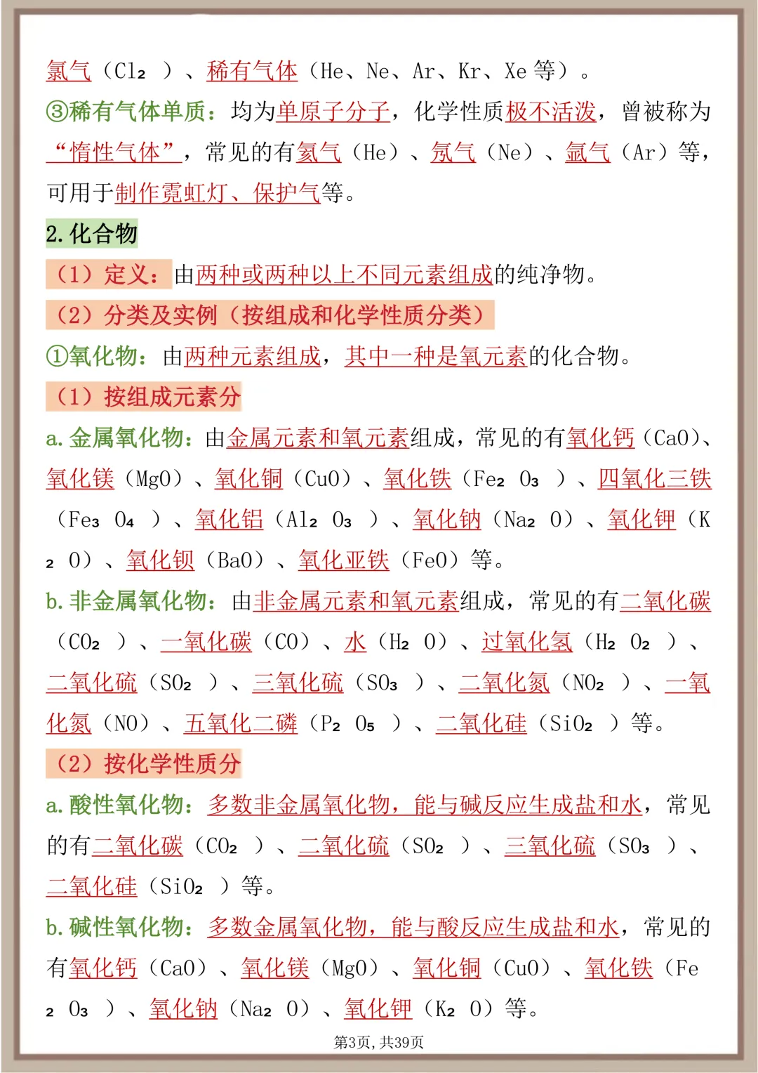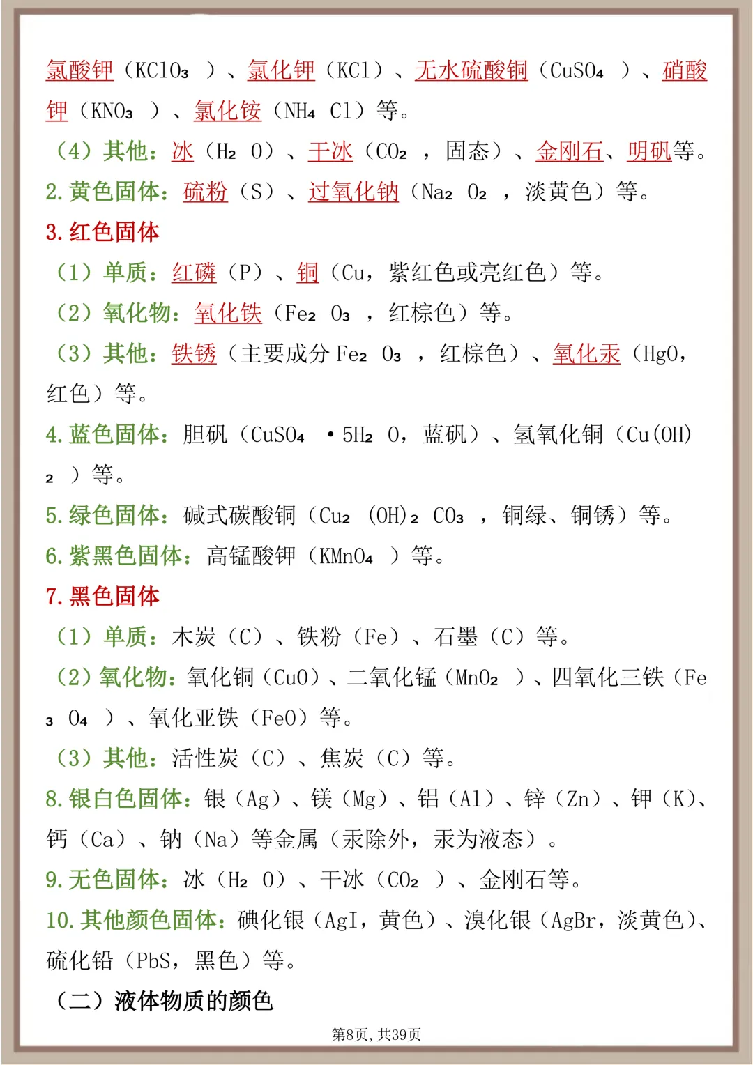 今天给大家整理了中考必备的【中考化学必备5大类考点精编】,覆盖常见物质分类、物质颜色、敞口放置质量变化、物质检验、化学核心之三全类型常考考点,附详细原理、易错辨析与完整知识点,不管题目如何变式,都能精准应对,轻松拿下高分!