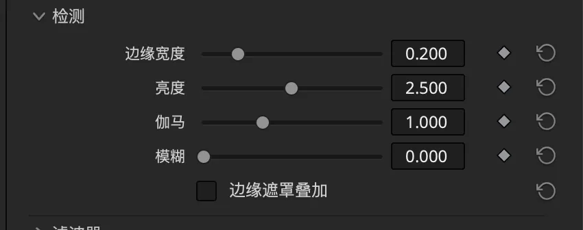 边缘遮罩叠加:勾选后,边缘会叠加在原画面上,方便实时观察效果;取消则只显示检测到的边缘轮廓,便于精细调整。