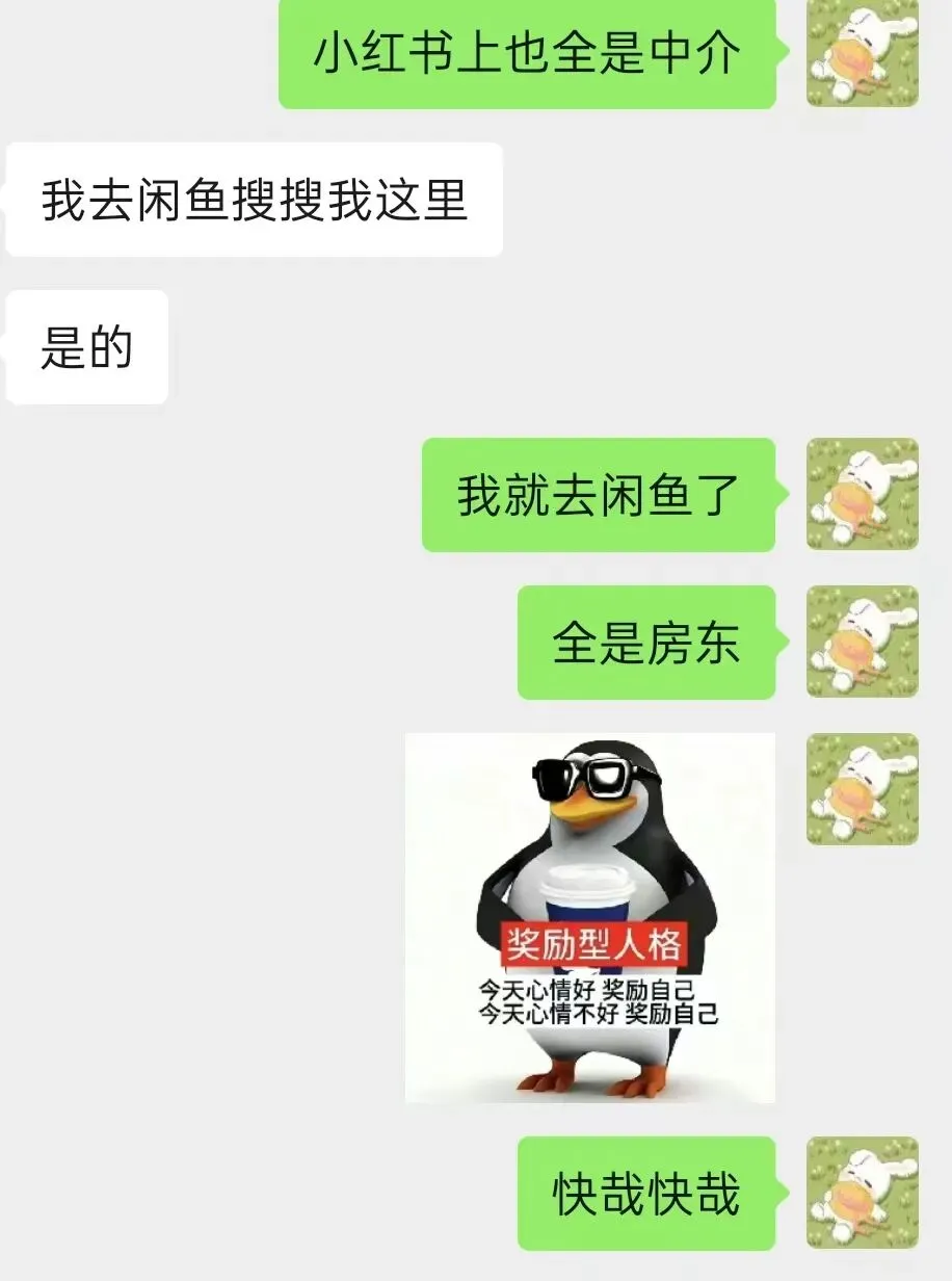 找了两天感觉世界上所有的租房软件上都是中介,包括小红书和抖音,还有各种微信小程序,除了一些找转租的年轻人就是中介了。